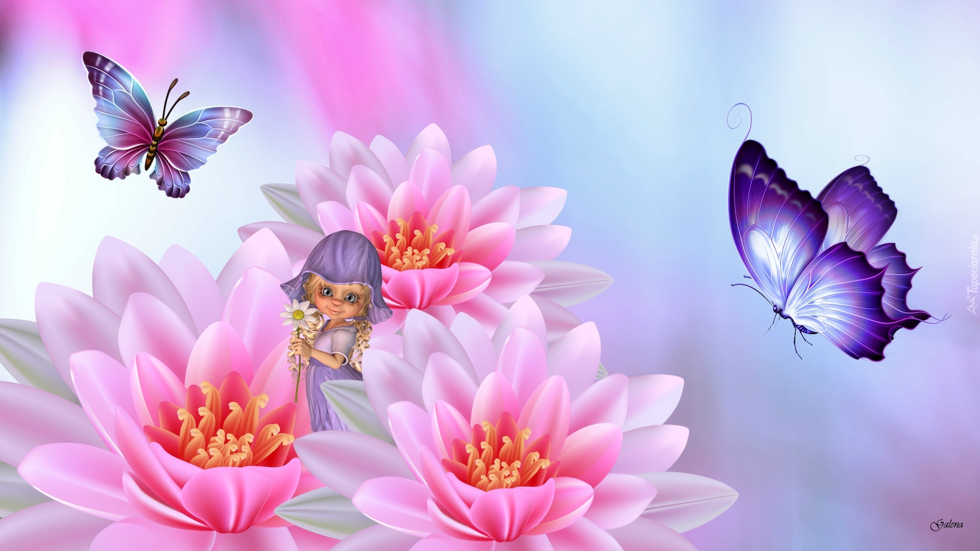 Edytor tapety: Kwiaty, Laleczka, Motyle, Grafika