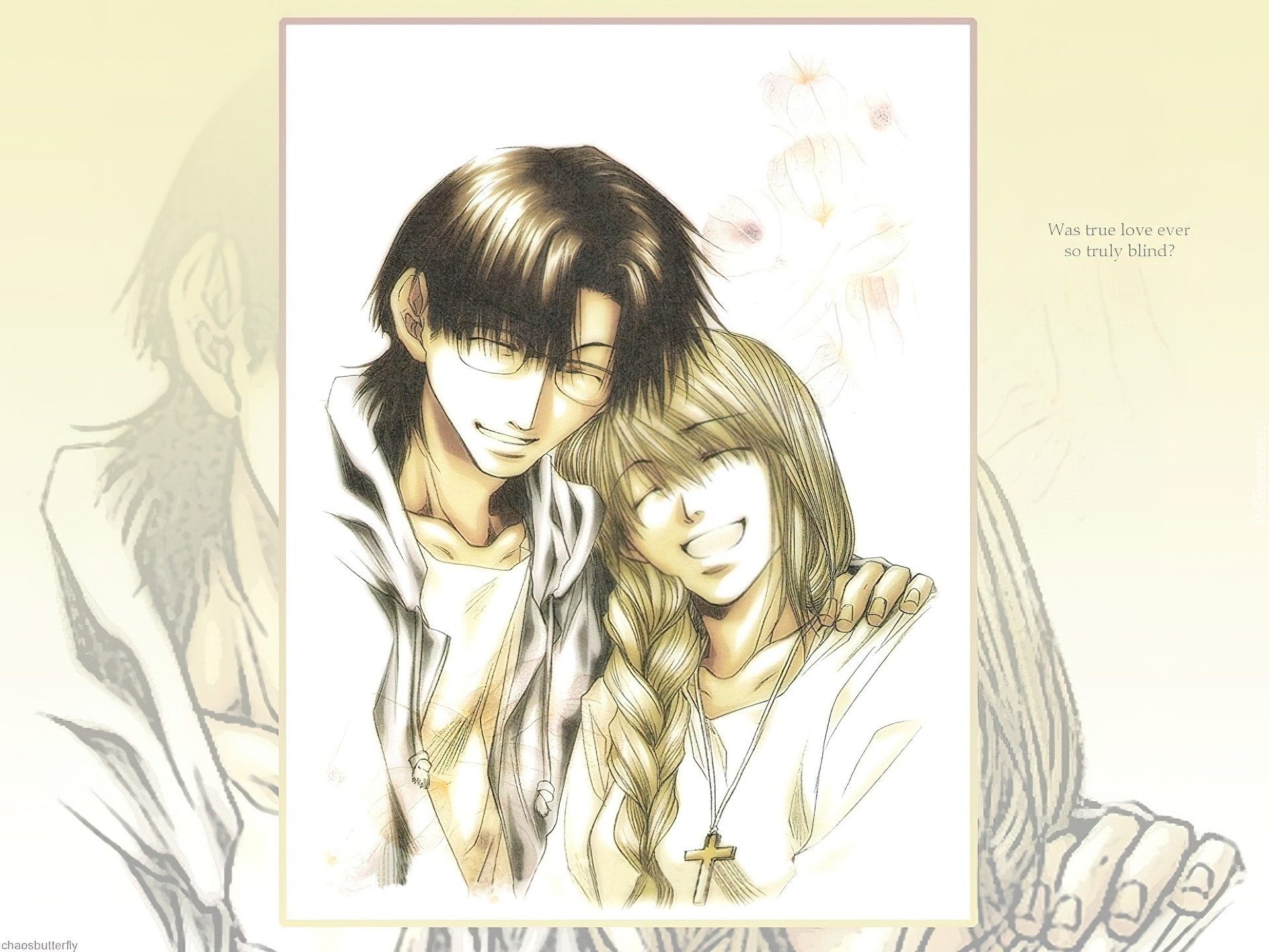 Edytor tapety: Saiyuki, para, warkocz, okulary