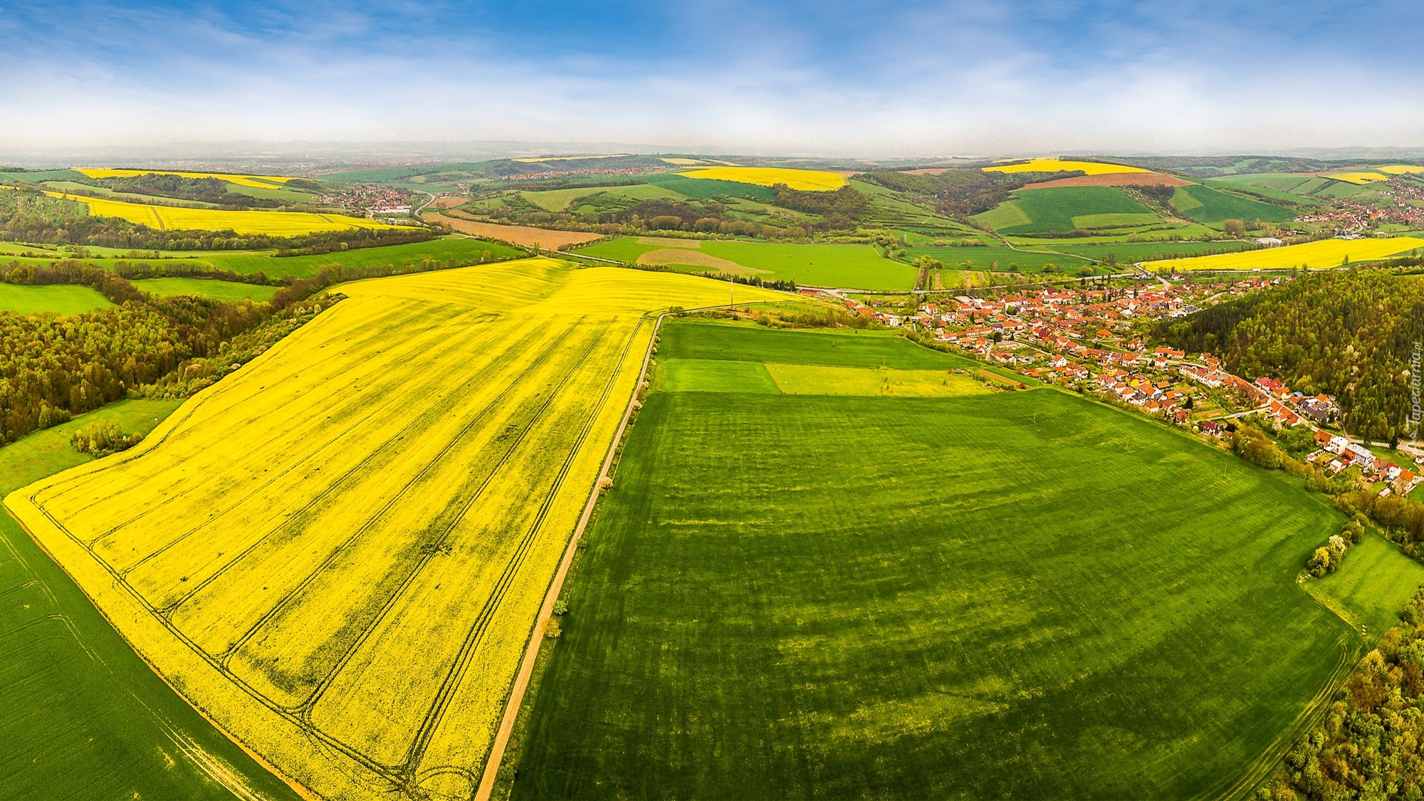 Edytor tapety: Czechy, Z, Lotu, Ptaka, Pola, Miasteczko