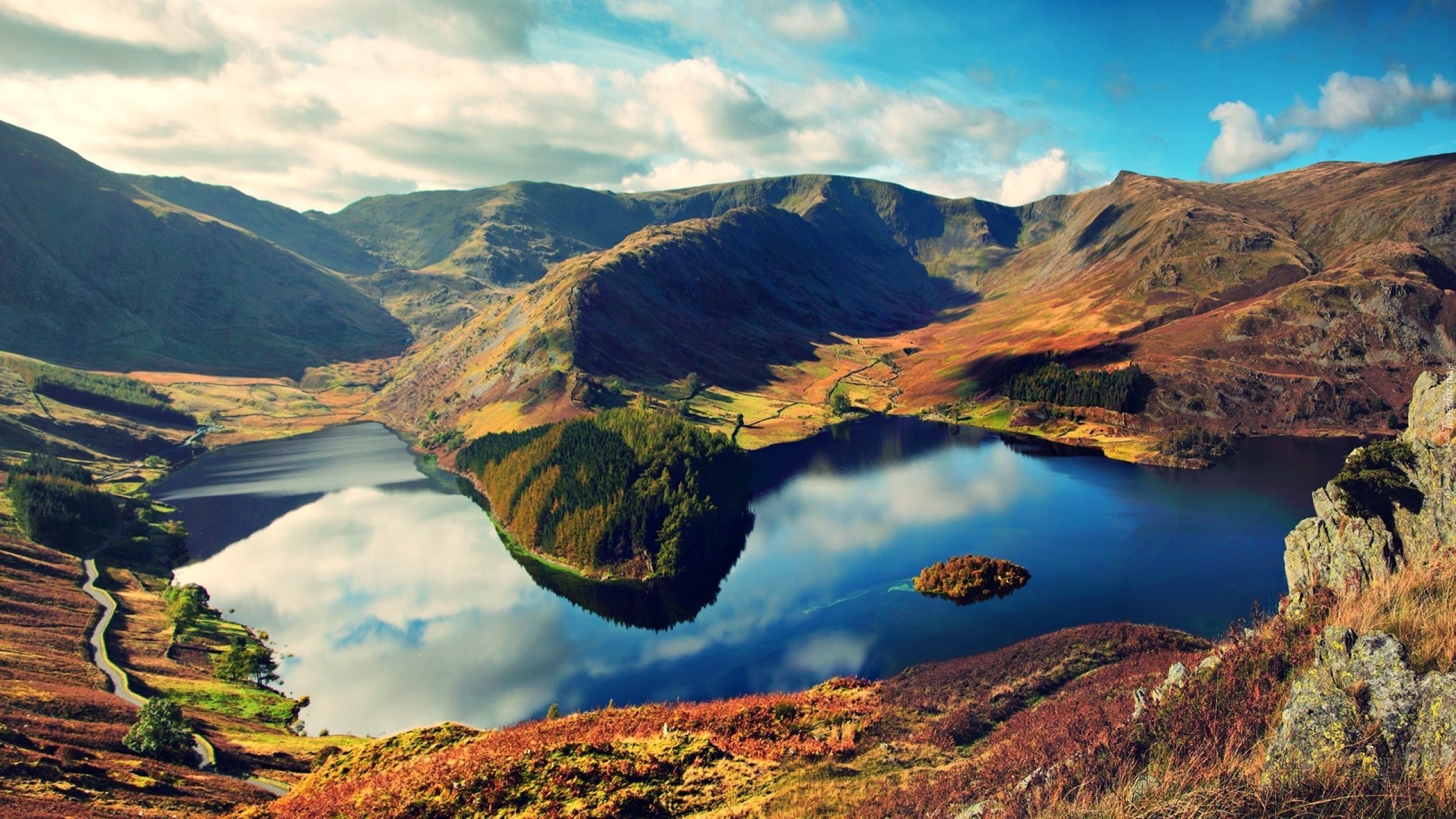 Edytor tapety: Góry, Jezioro, Dolina, Chmury, Niebo