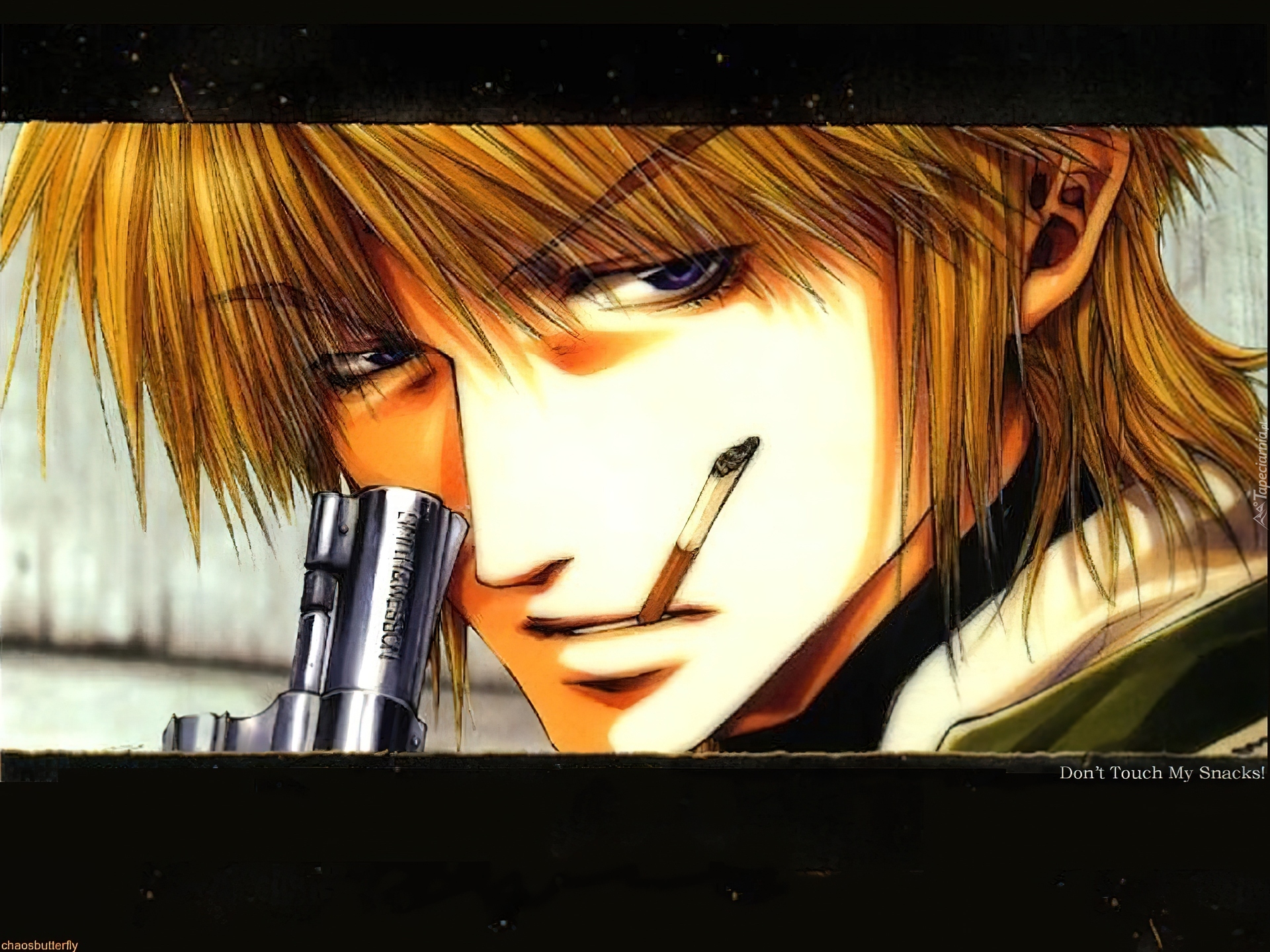 Edytor tapety: Saiyuki, twarz, pistolet, papieros
