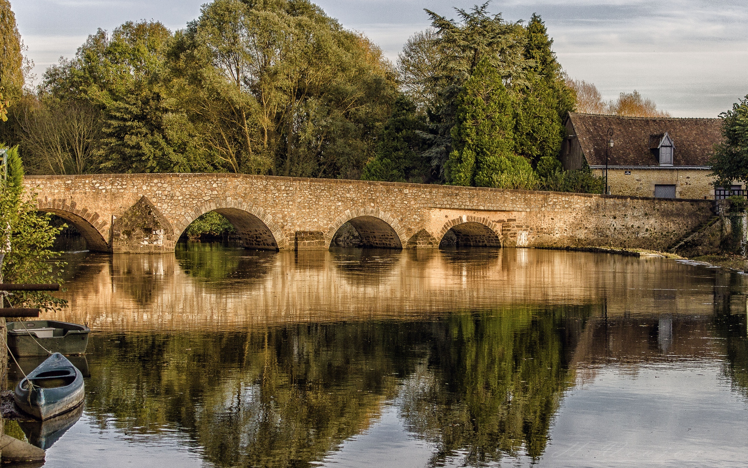 Edytor tapety: Wieś, Most, Rzeka, Drzewa, Kajak