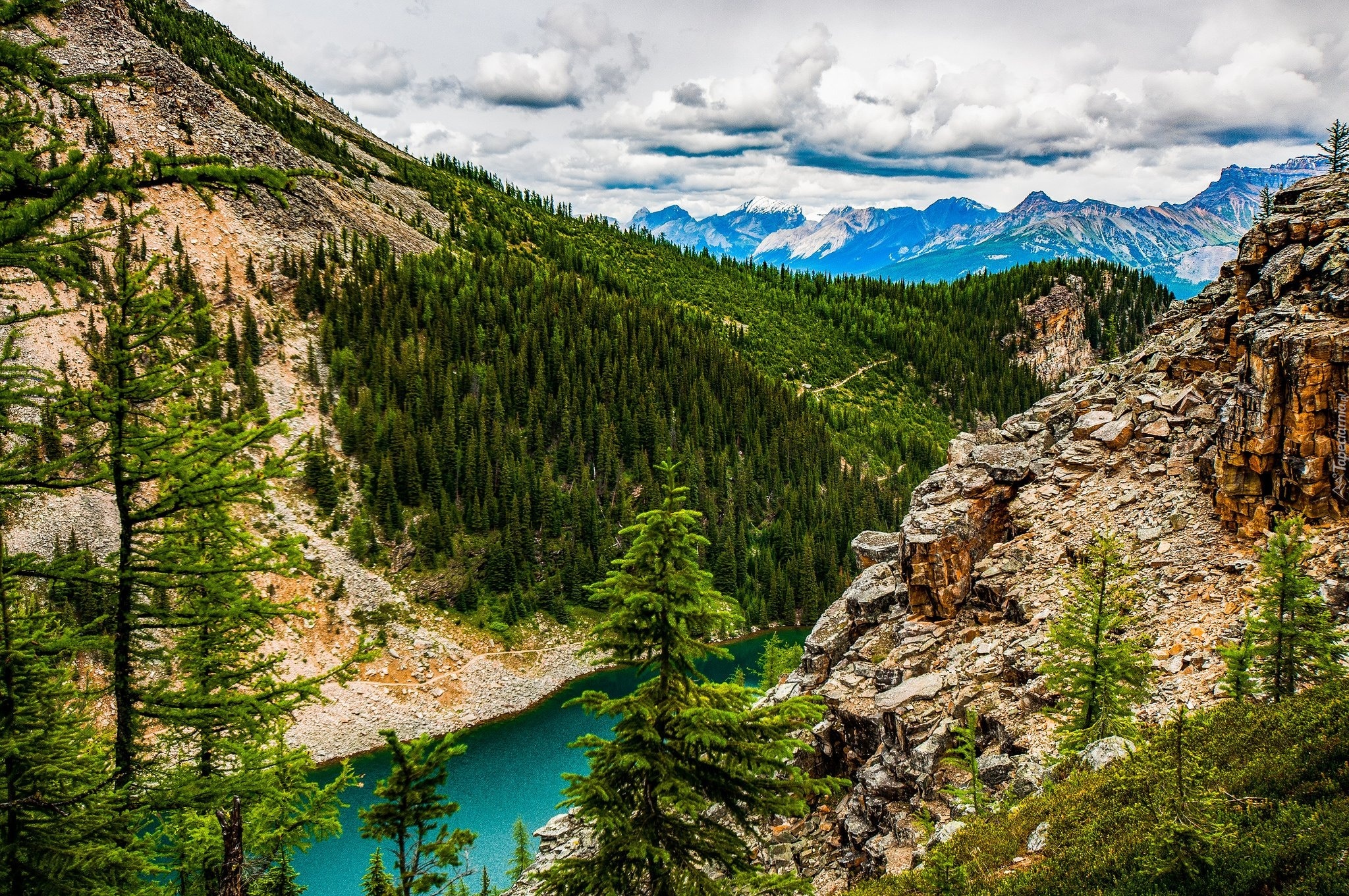 Edytor tapety: Kanion, Jezioro, Las, Chmuy