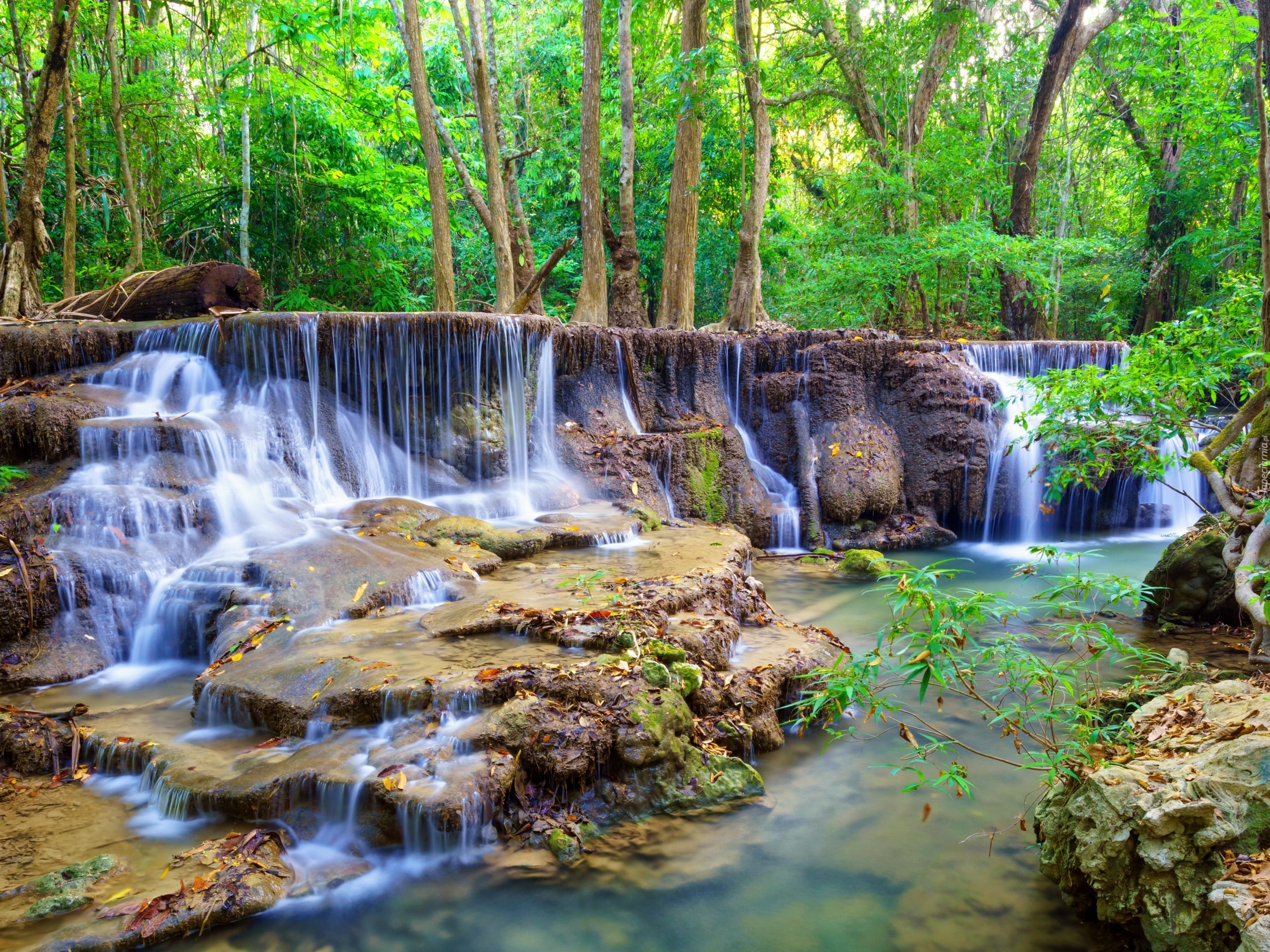 Edytor tapety: Wodospad, Las, Skały