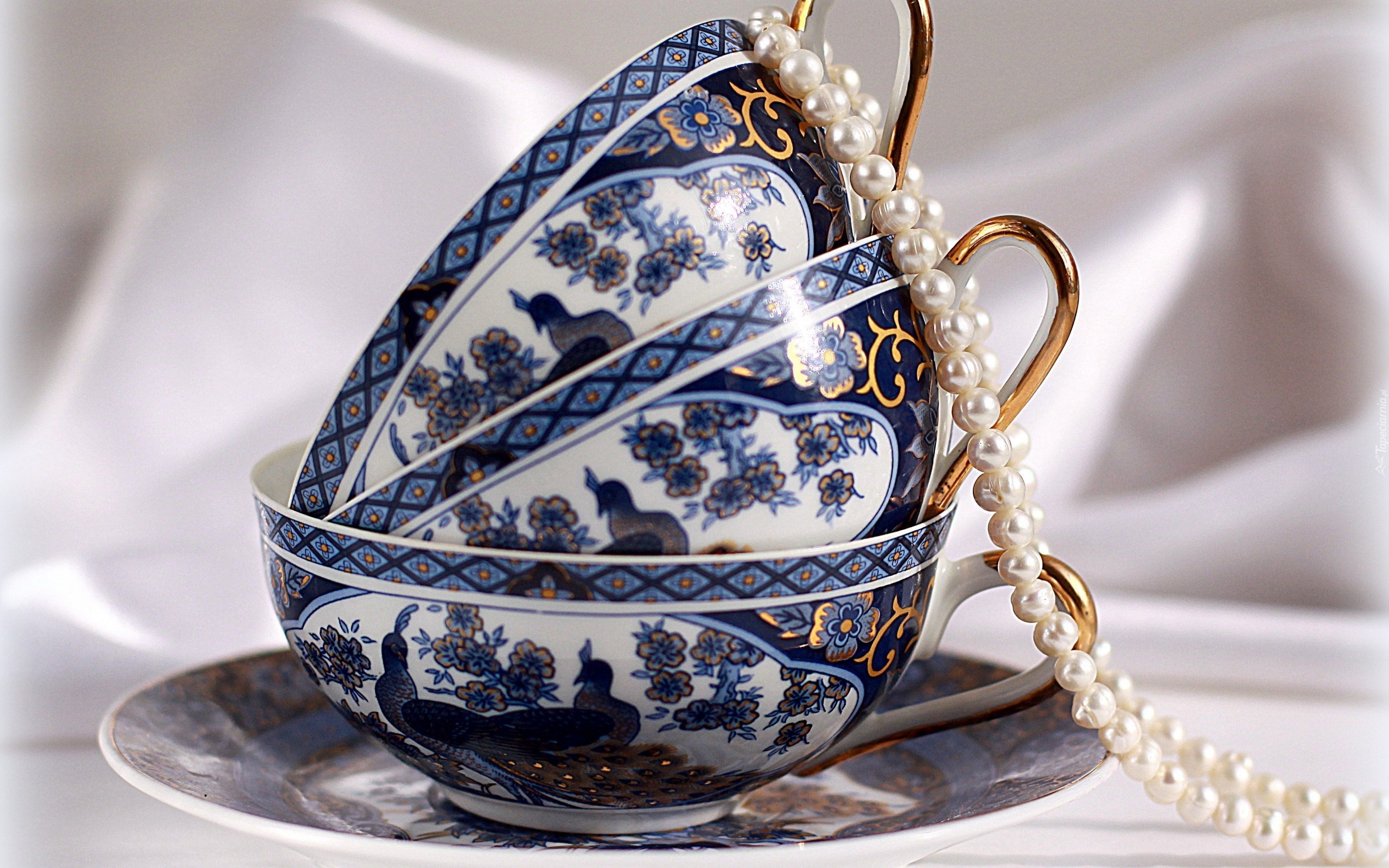 Edytor tapety: Porcelana, Filiżanki, Perły