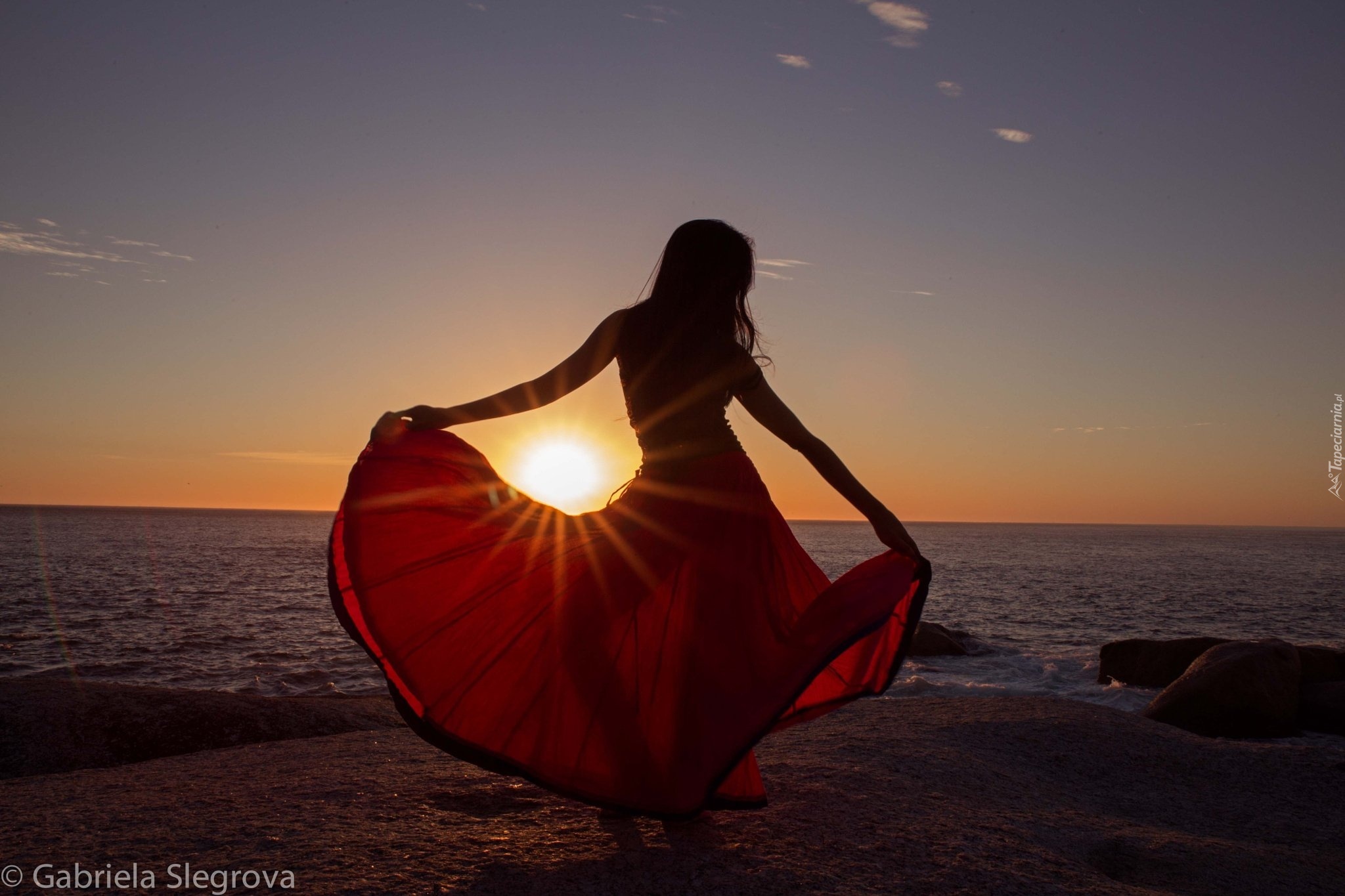 Edytor tapety: Zachód, Słońca, Plaża, Morze, Kobieta