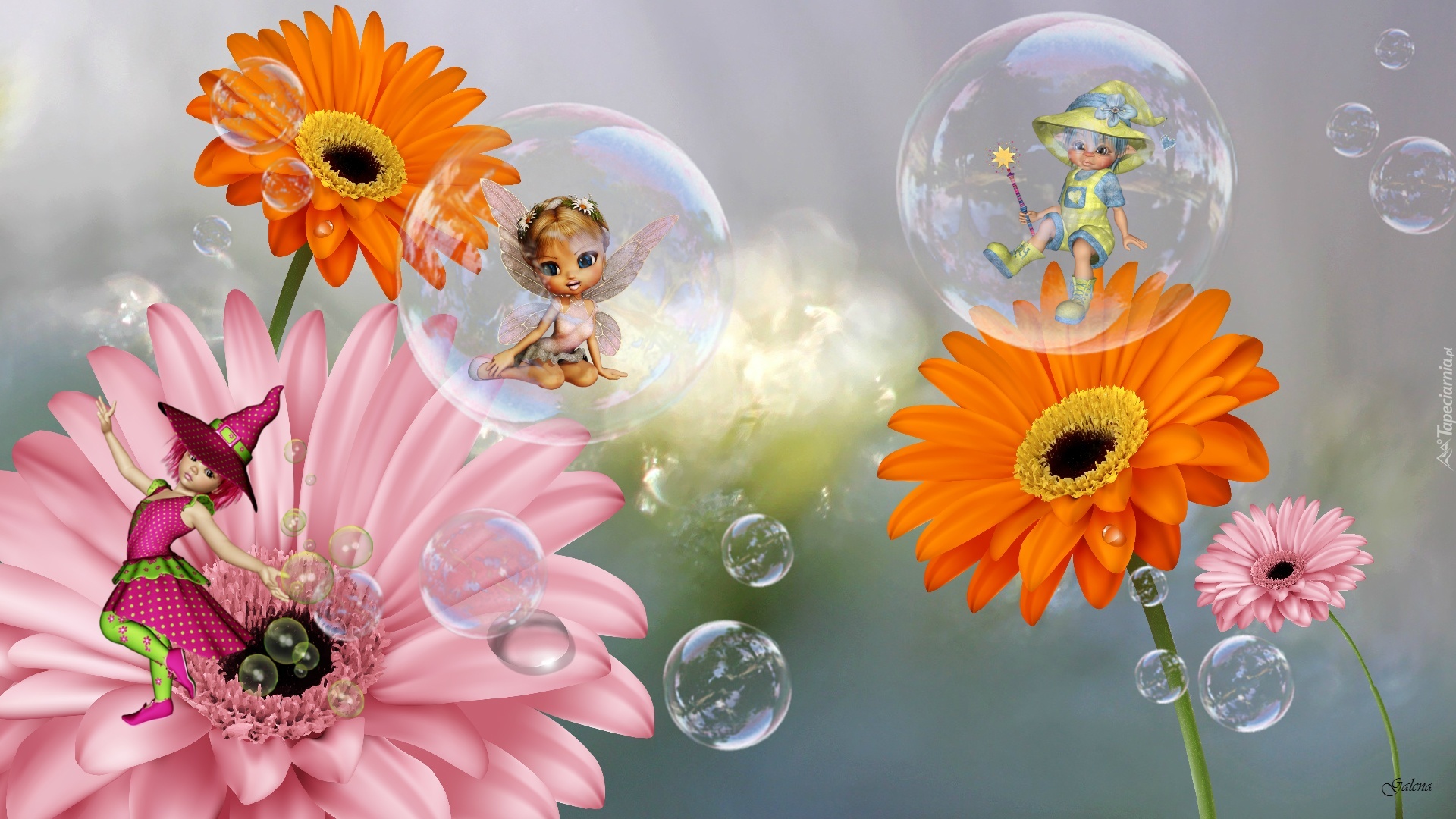 Edytor tapety: Laleczki, Bańki, Mydlane, Gerbery, Grafika