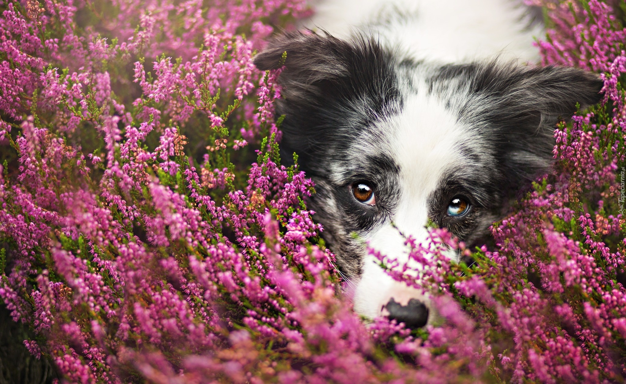 Edytor tapety: Pies, Wrzosy