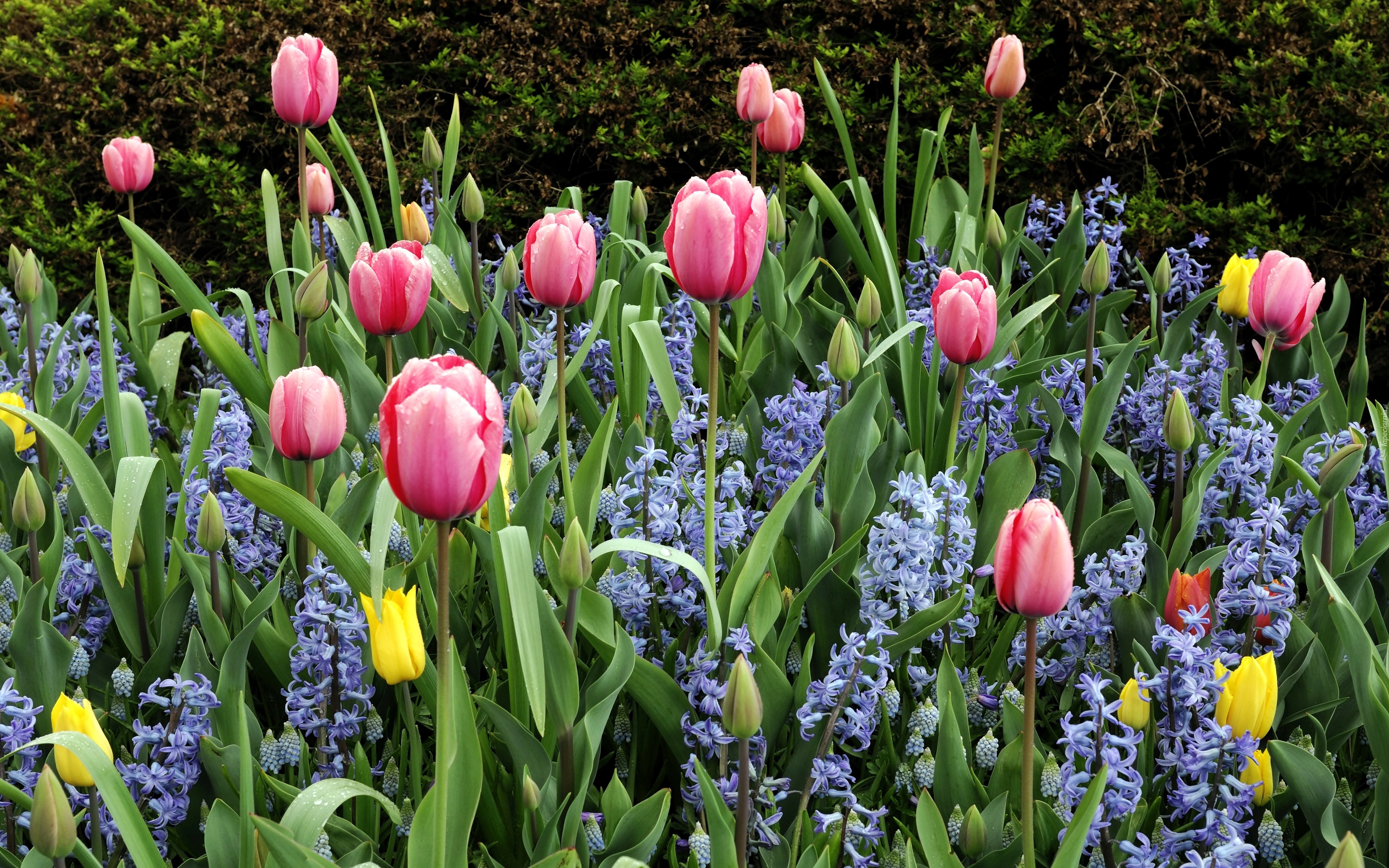 Edytor tapety: Tulipany, Hiacynty, Ogród