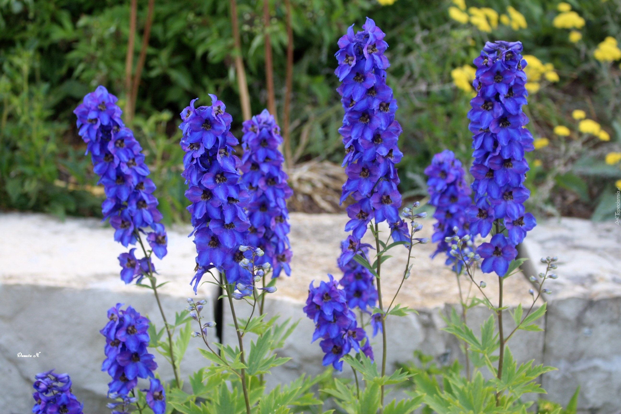 Edytor tapety: Niebieskie, Kwiaty, Ostróżka, Ogród