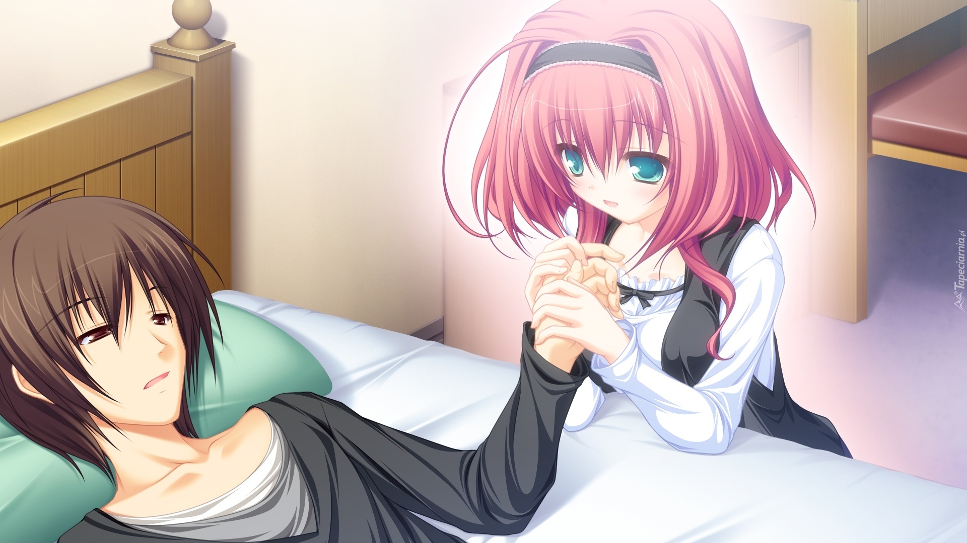 Edytor tapety: Dziewczyna, Chory, Chłopak, Łóżko, Poduszka, Pokój, Manga, Anime