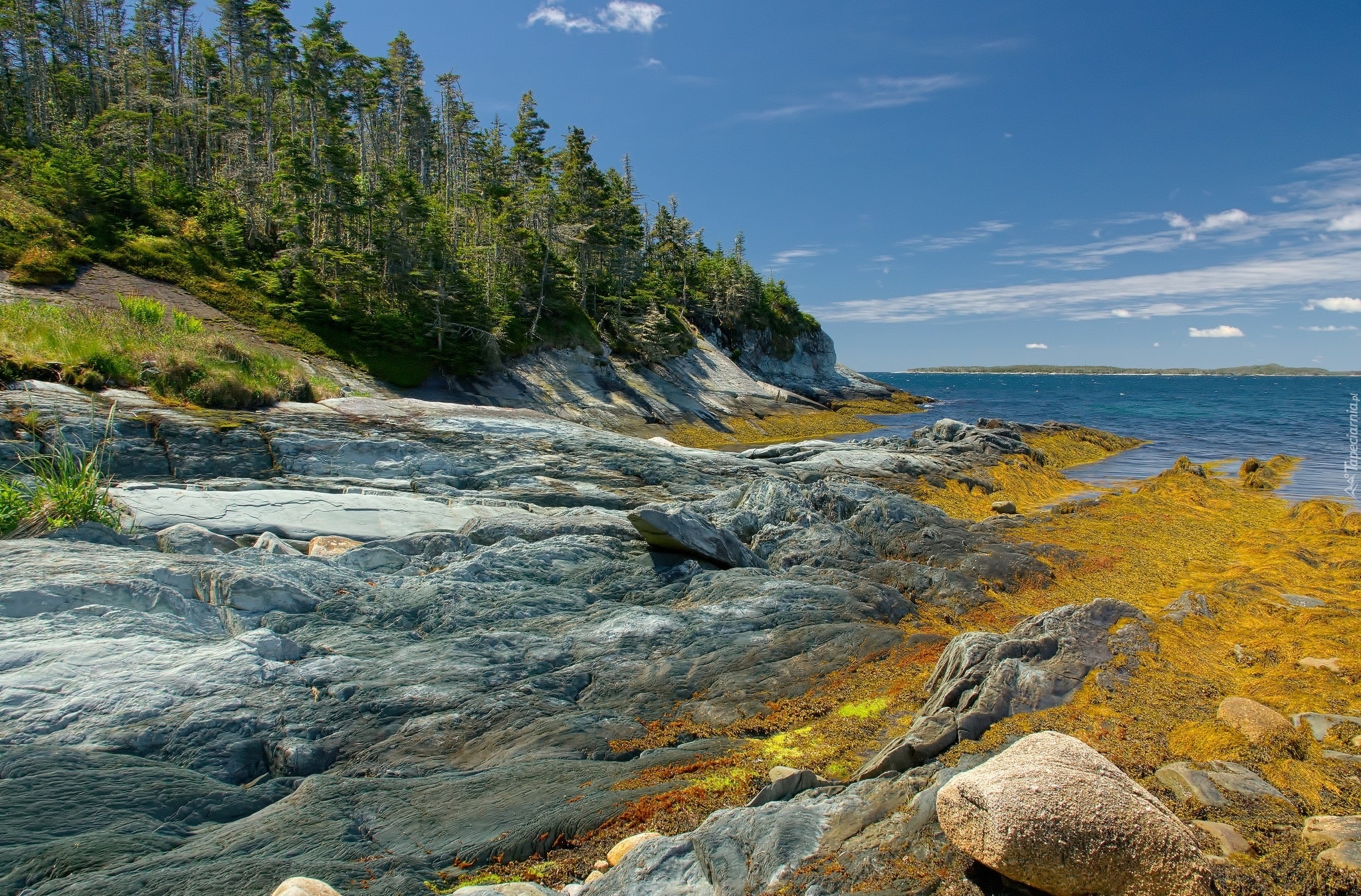 Edytor tapety: Morze, Drzewa, Wzgórza, Skała