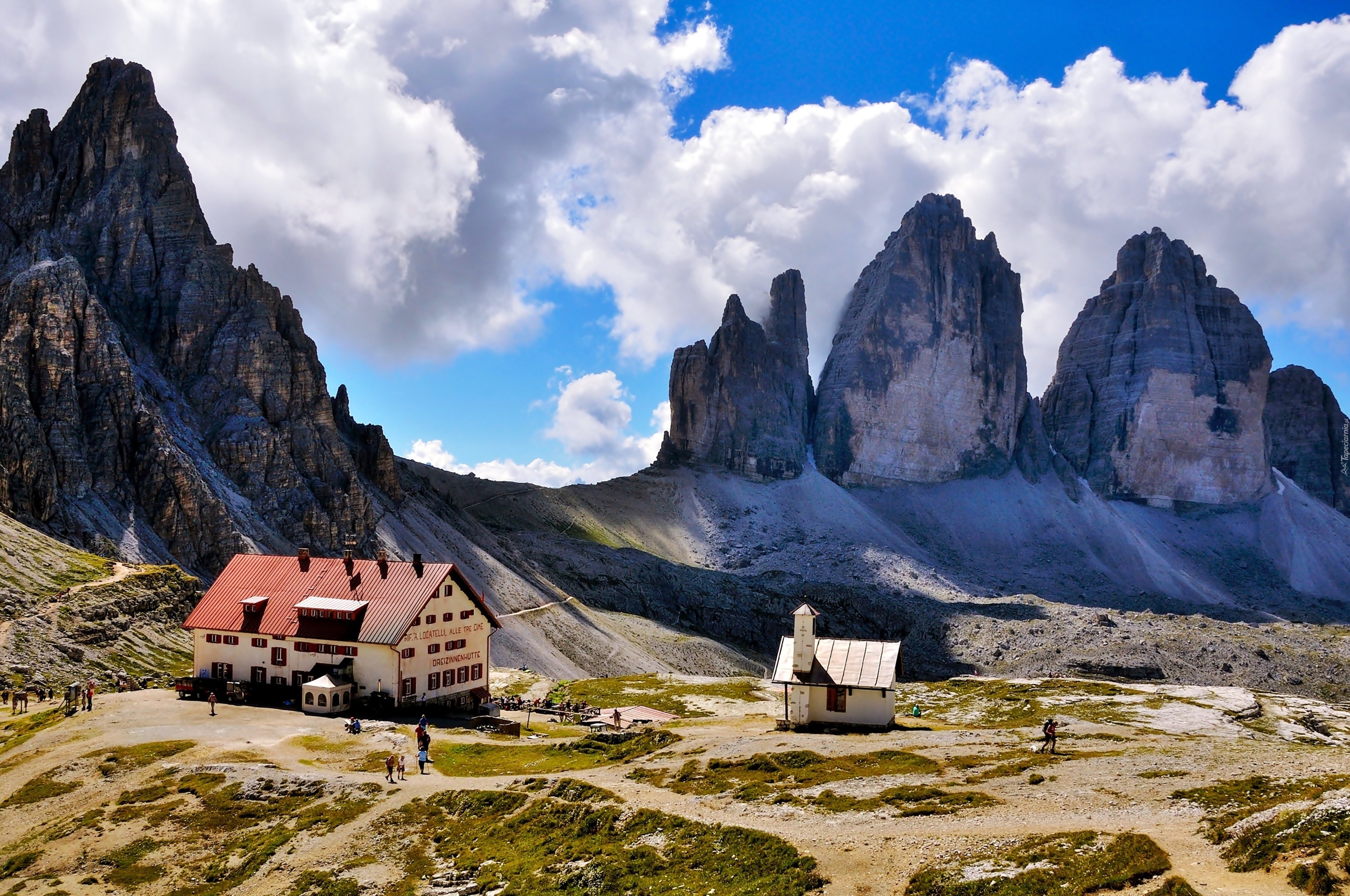 Edytor tapety: Góry, Włochy, Chmury, Domy, Ludzie