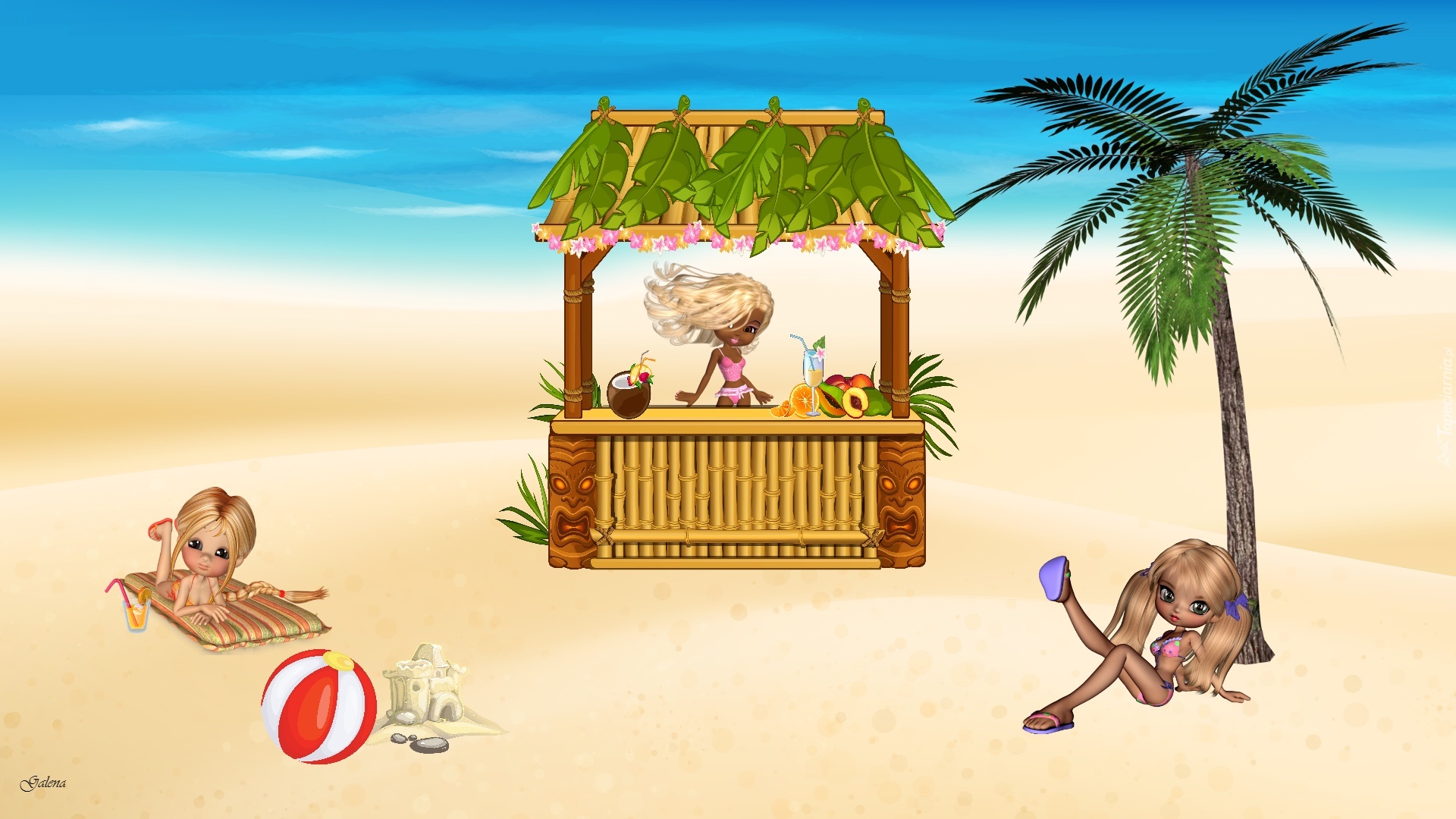 Edytor tapety: Plaża, Palma, Laleczki, Piłka, Bar, Grafika