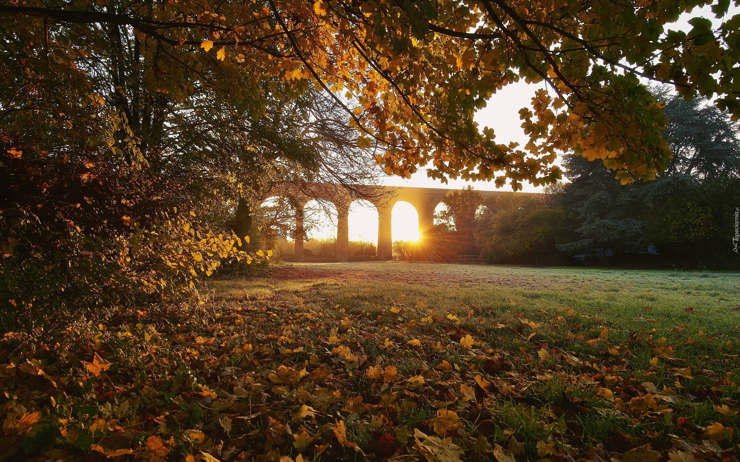 Edytor tapety: Most, Zachód, Słońca, Łąka, Drzewa