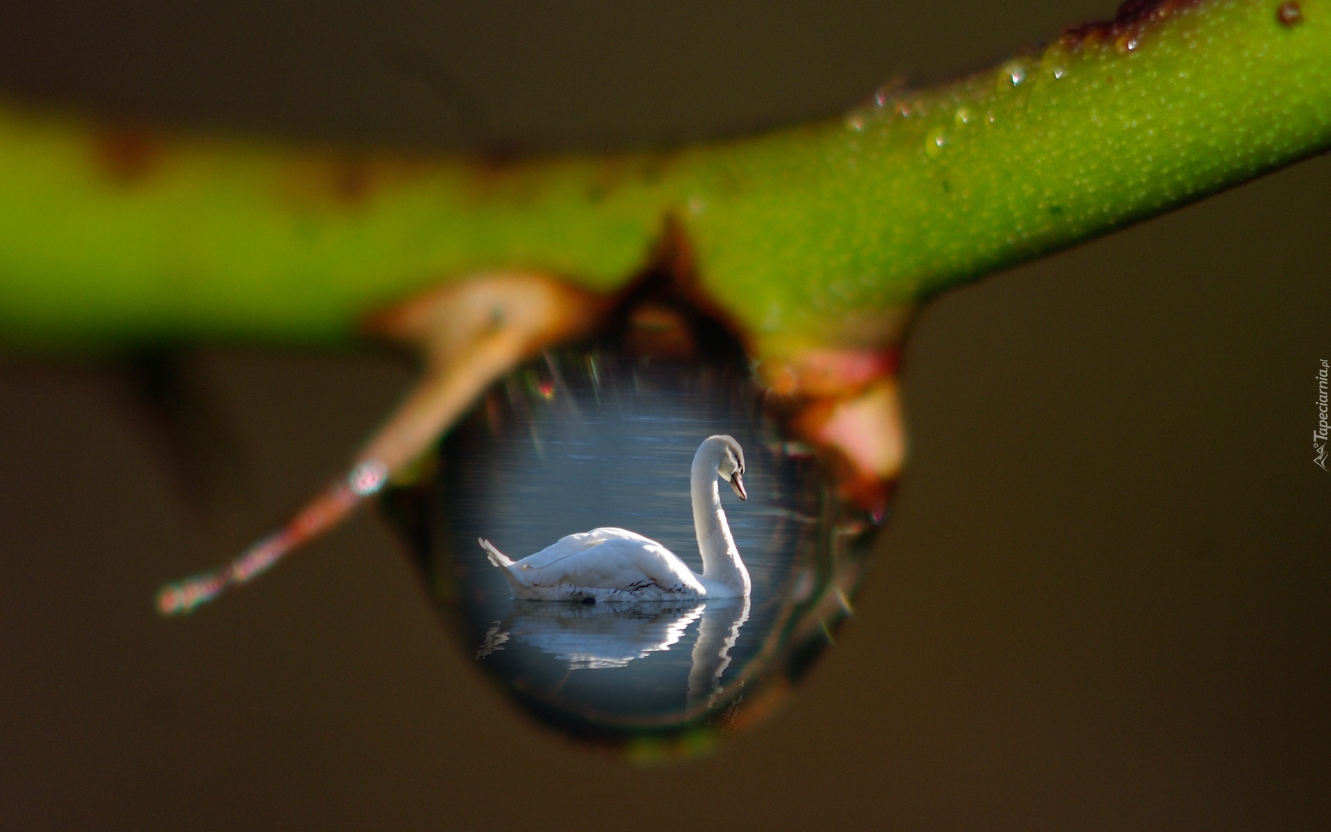 Edytor tapety: Gałąź, Kropla, Łabędź, Makro