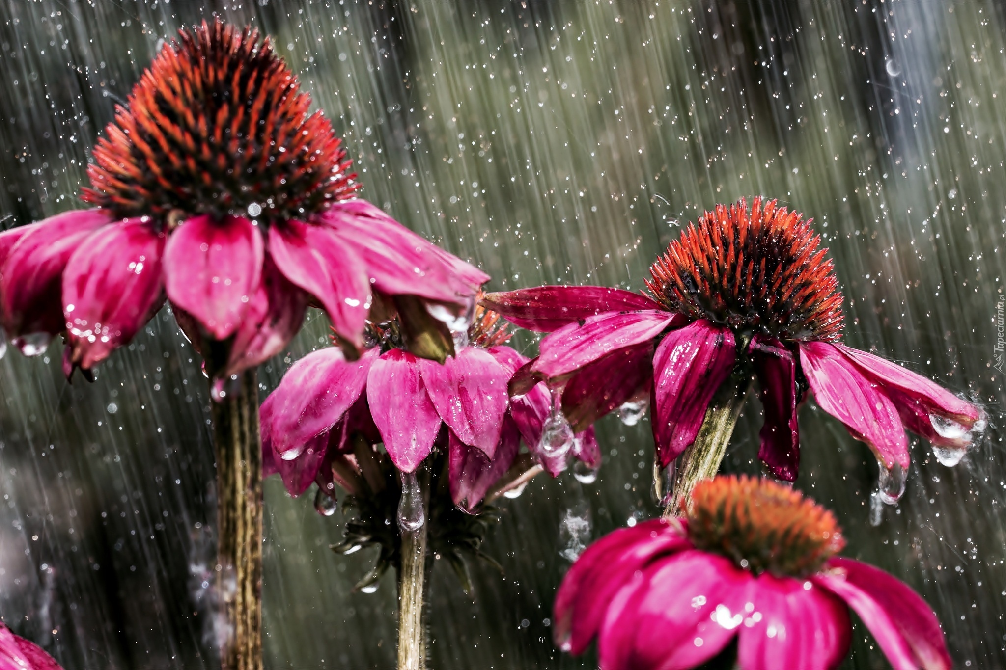 Edytor tapety: Różowe, Kwiaty, Jeżówka, Krople, Deszcz