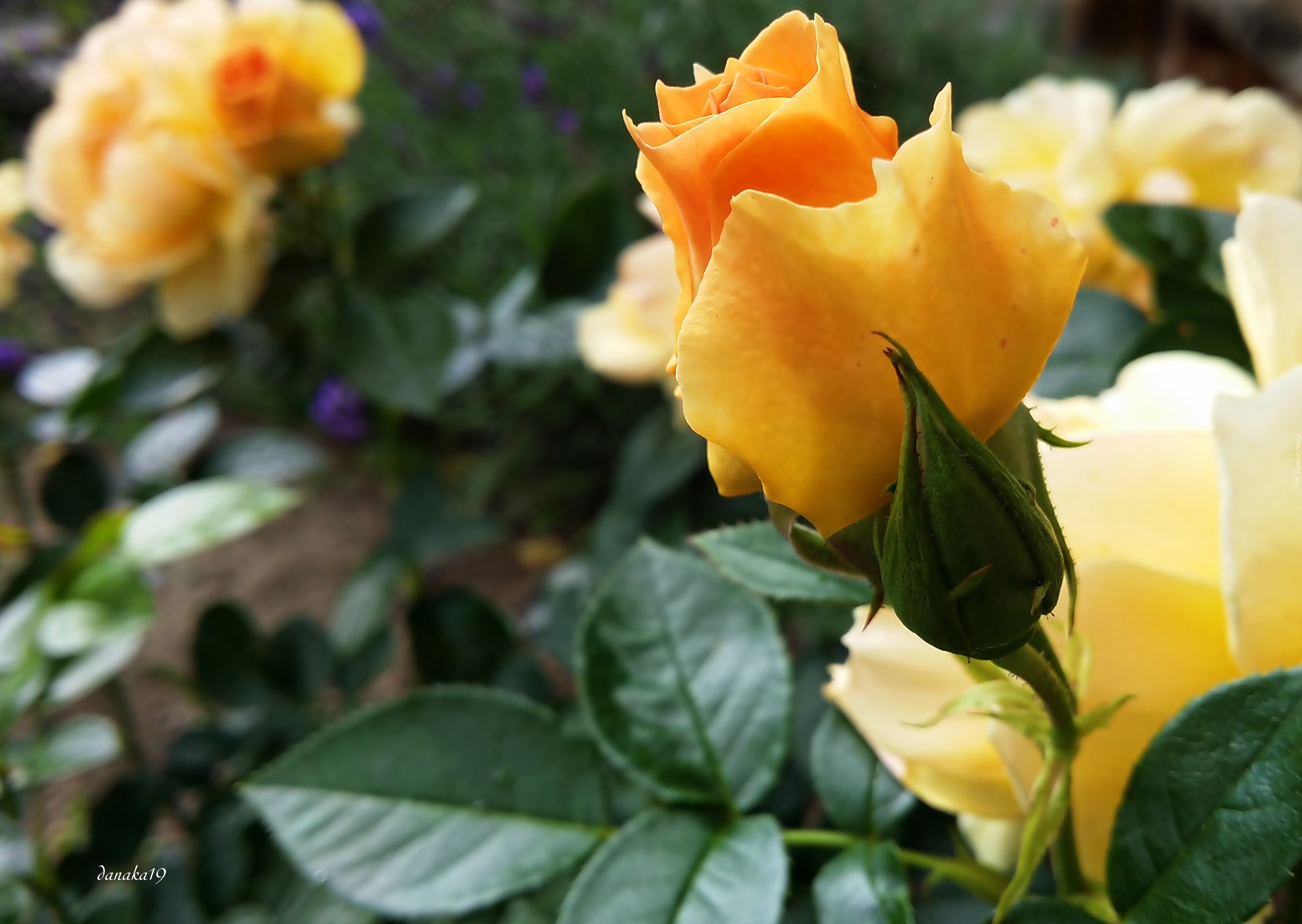 Edytor tapety: Kwiat, Żółto, Pomarańczowa, Róża, Pączek, Liście