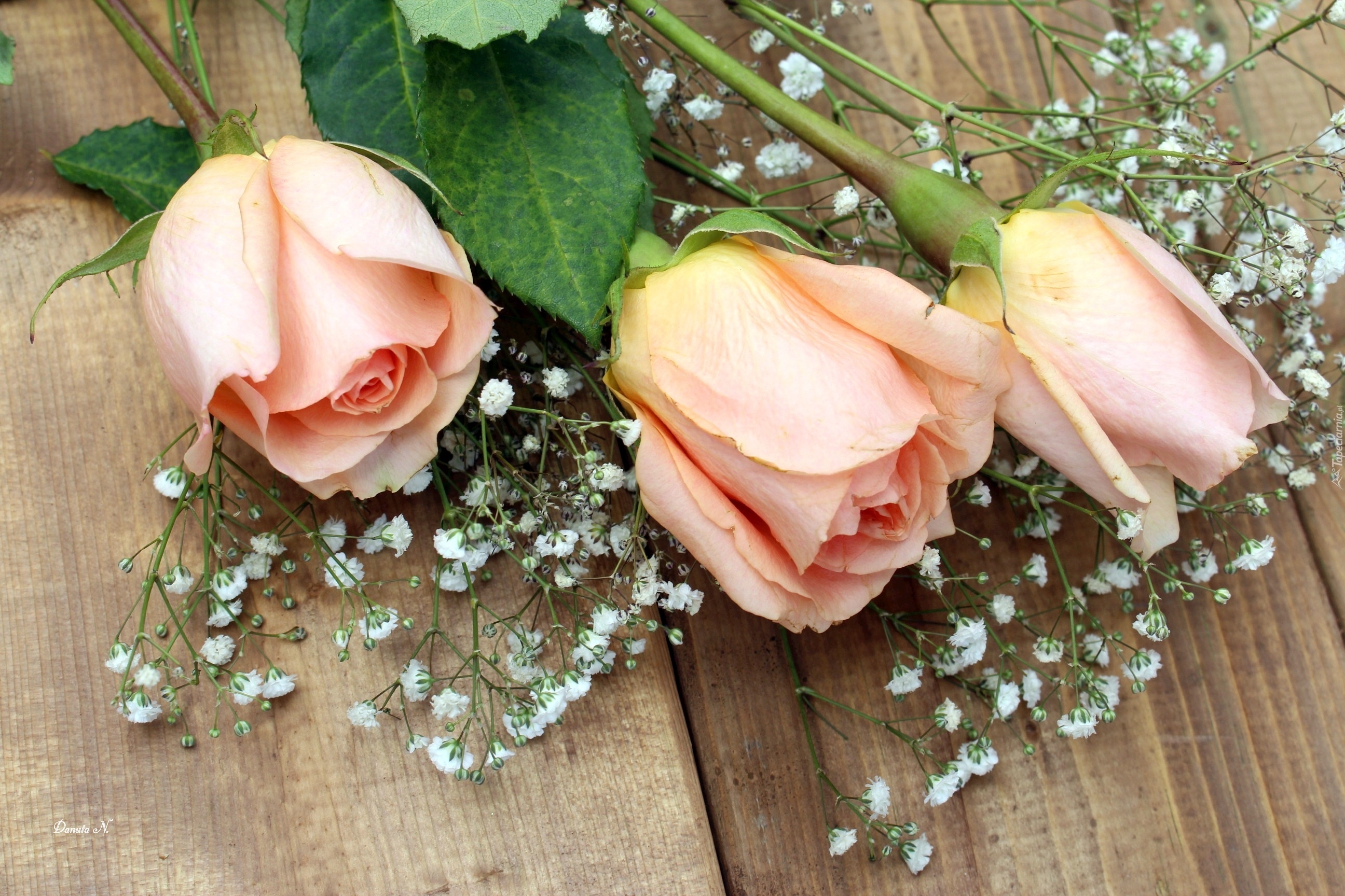 Edytor tapety: Róże, Herbaciane, Liście, Gipsówka, Deski