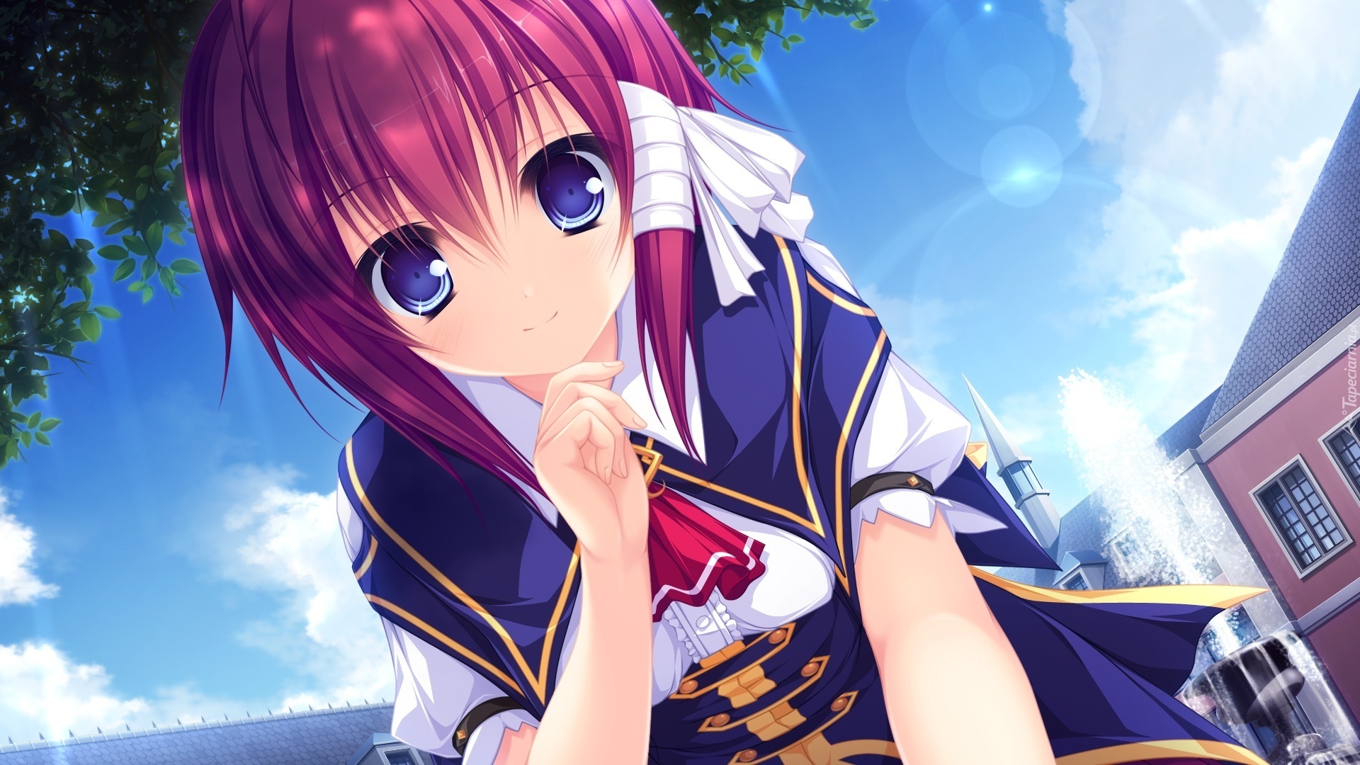 Edytor tapety: Dziewczyna, Drzewo, Niebo, Budynek, Fontanna, Manga, Anime