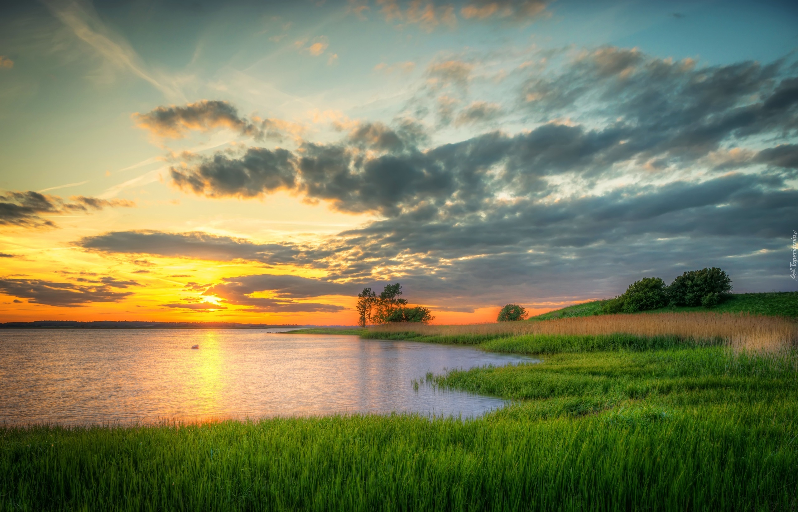 Edytor tapety: Niemcy, Jezioro, Wschód, Słońca, Roślinność, Chmury