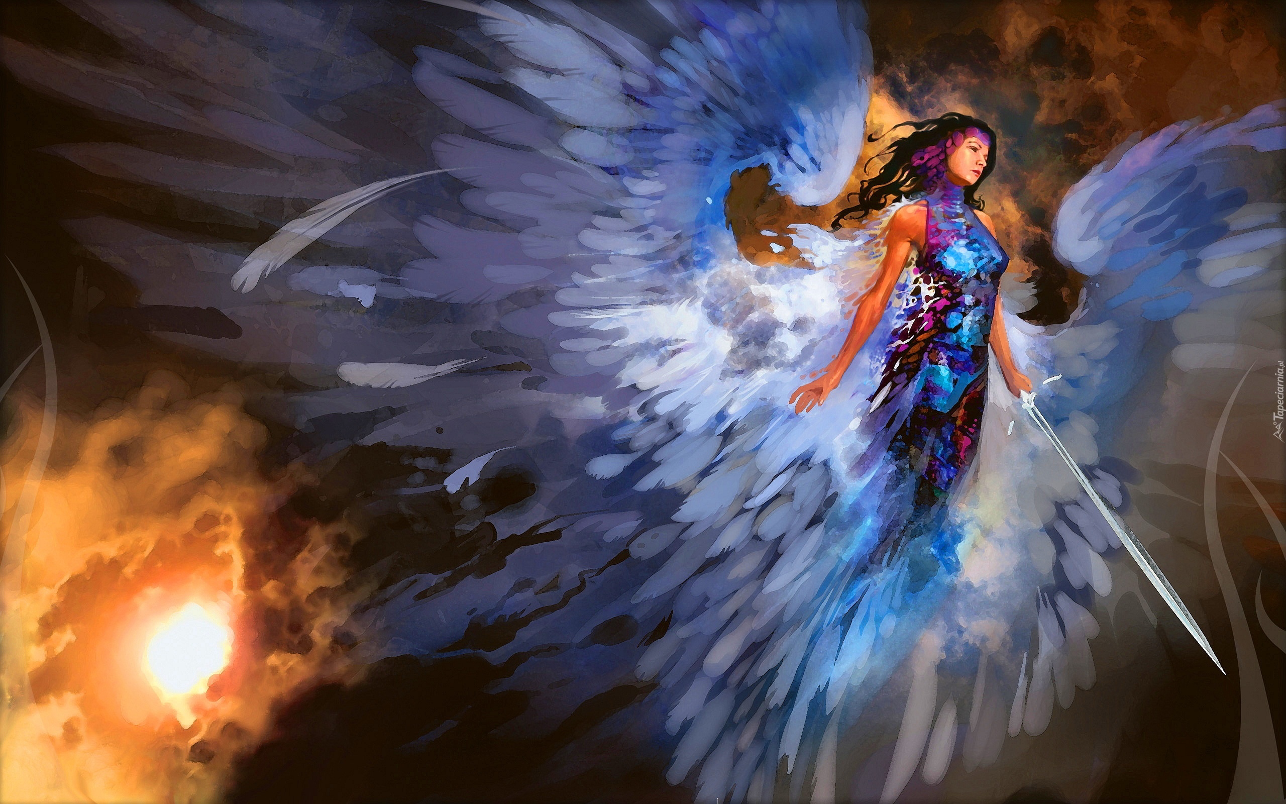 Edytor tapety: Kobieta, Anioł, Miecz, Światło