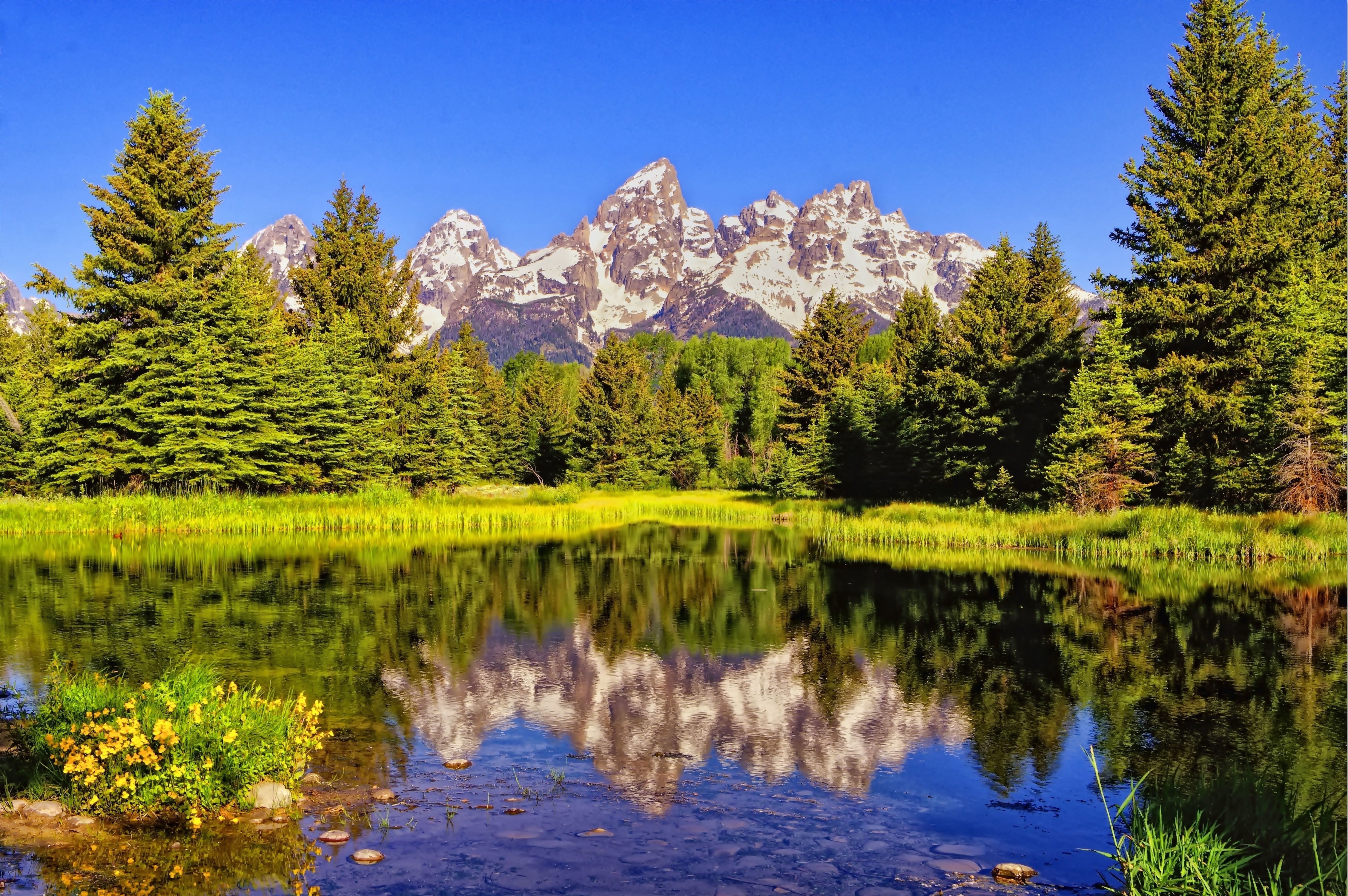 Edytor tapety: Góry, Jezioro, Odbicie, Drzewa, Roślinność
