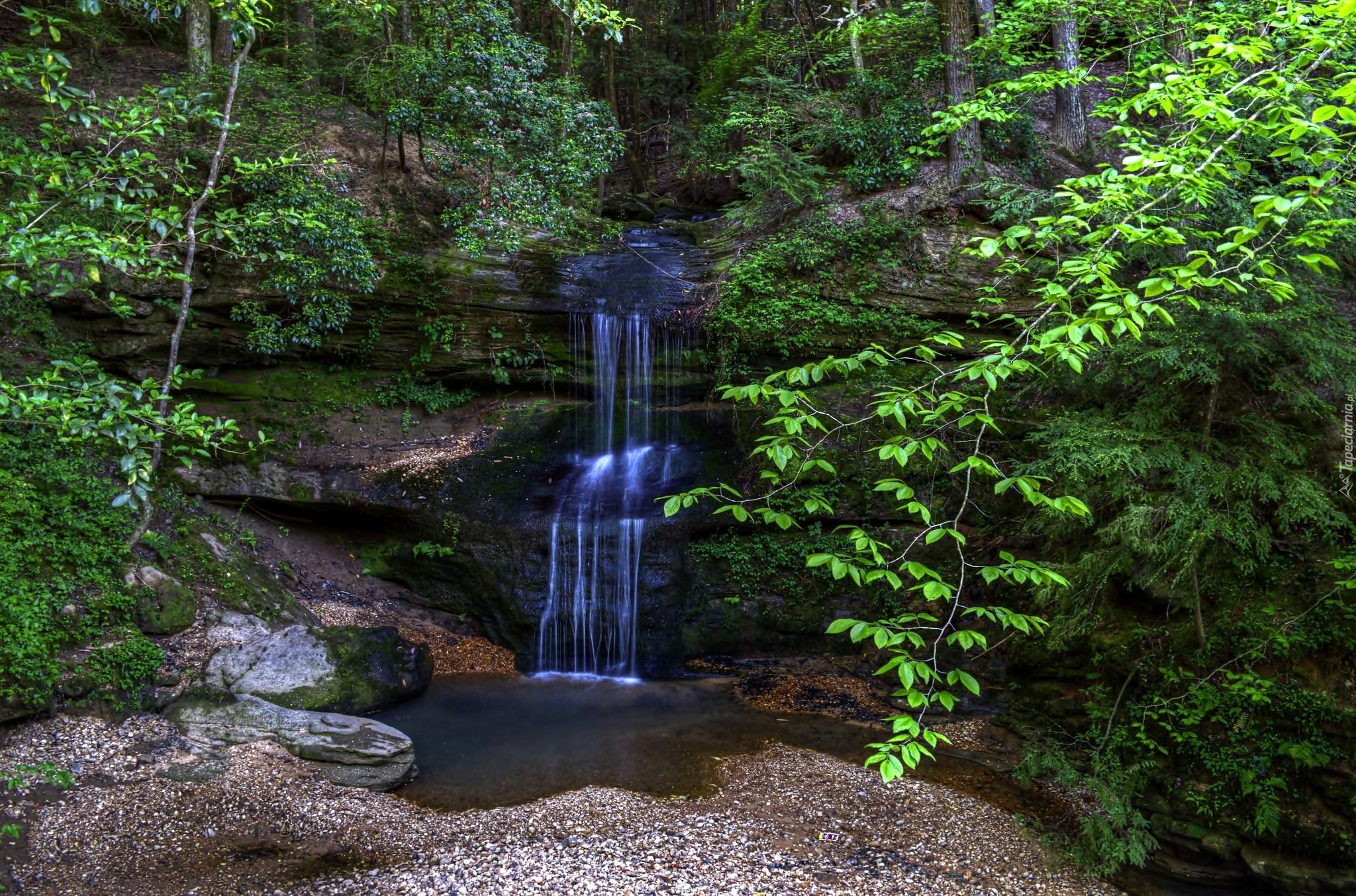 Edytor tapety: Wodospad, Las, Potok, Skały