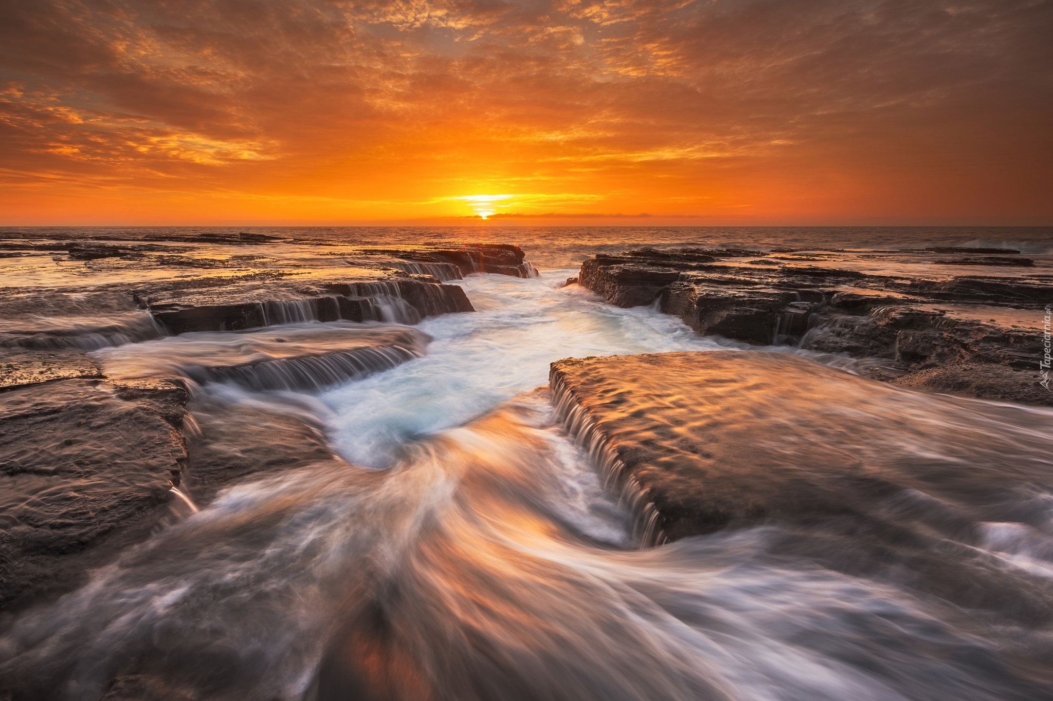 Edytor tapety: Zachód, Słońca, Morze, Skały