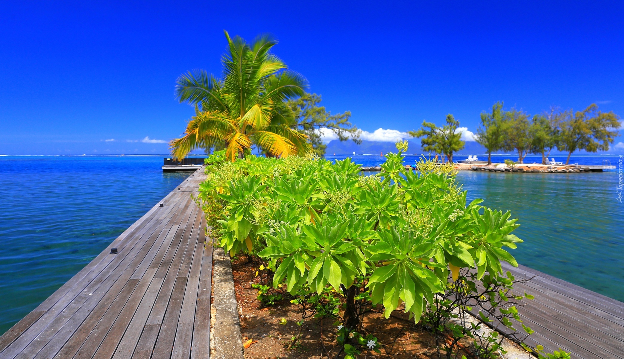 Edytor tapety: Polinezja Francuska, Tahiti, Molo, Palma, Rośliny