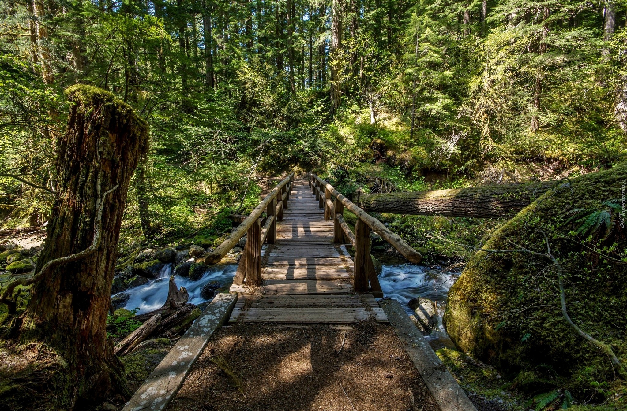 Edytor tapety: Las, Rzeczka, Mostek