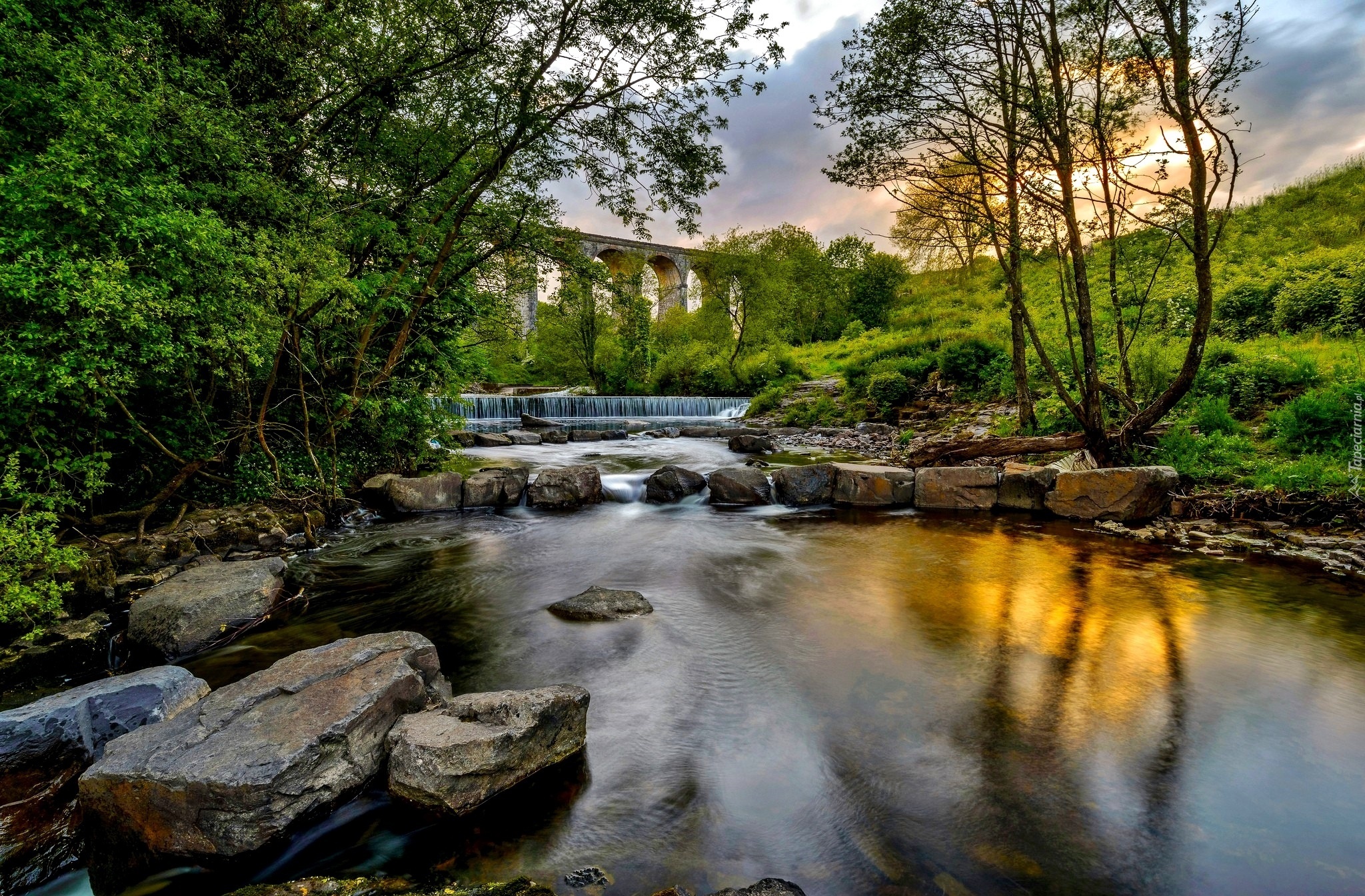 Edytor tapety: Rzeka, Kamienie, Most, Drzewa