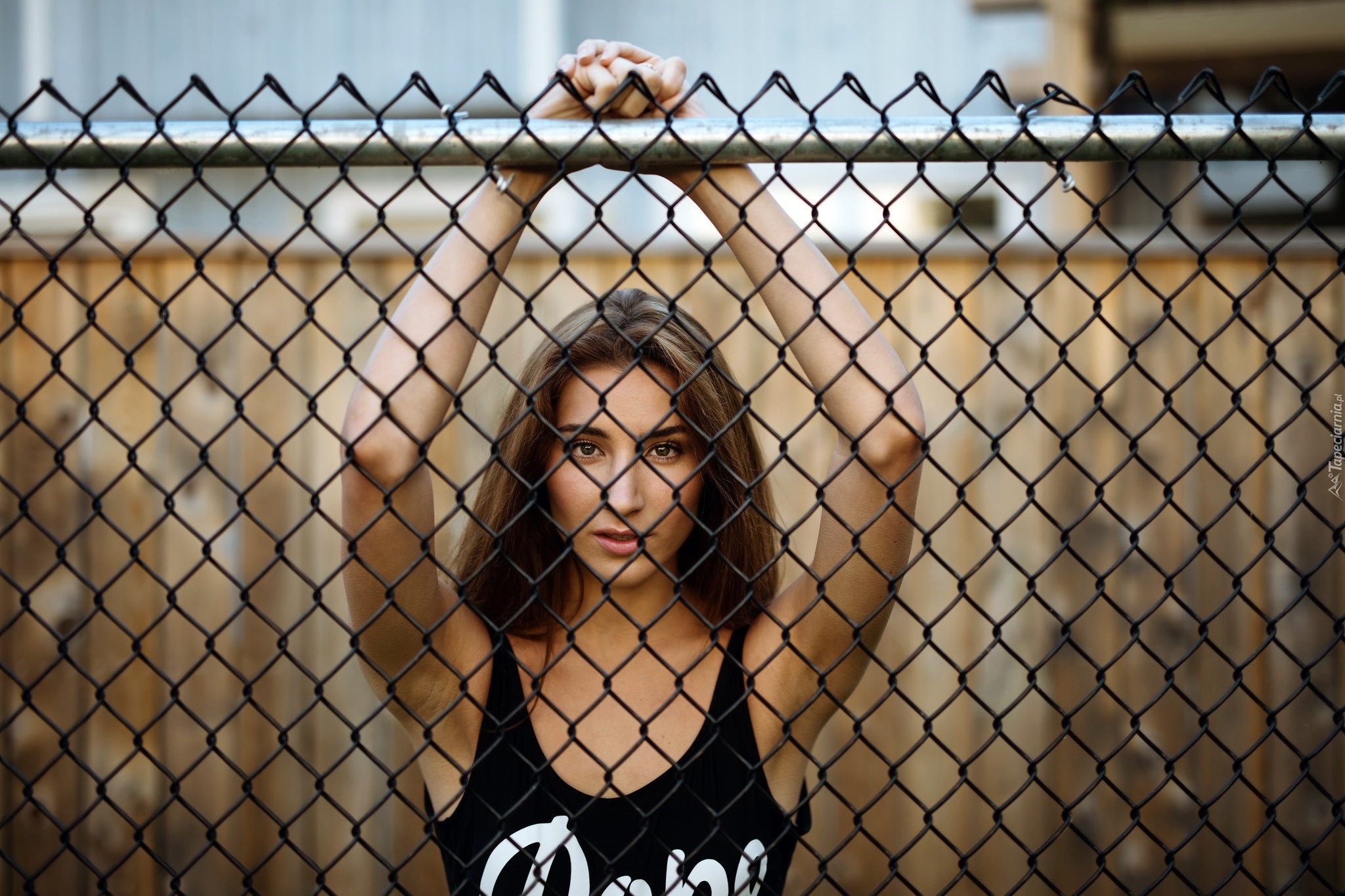 Edytor tapety: Dziewczyna, Ogrodzenie, Siatka