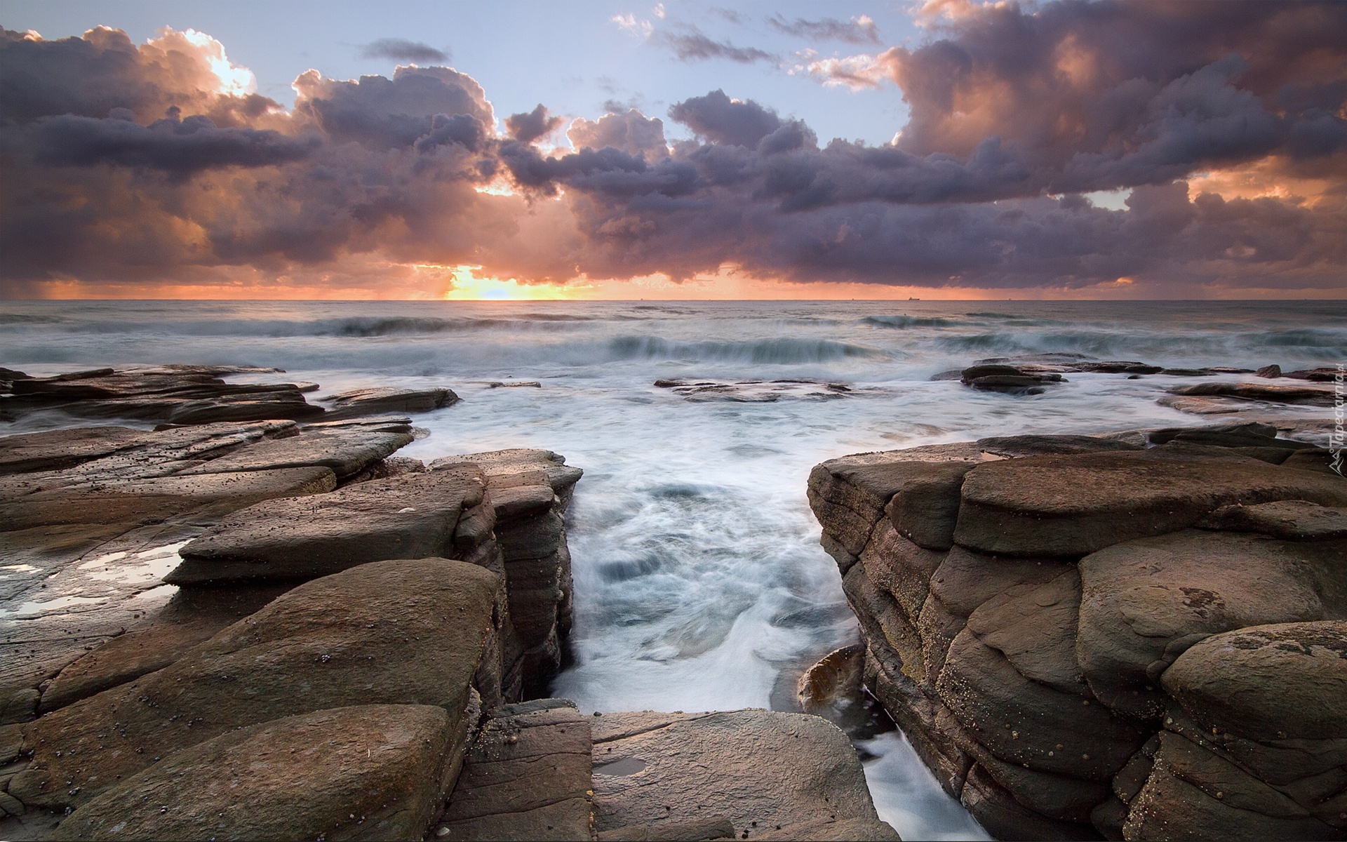 Edytor tapety: Morze, Skały, Zachód, Słońca, Chmury