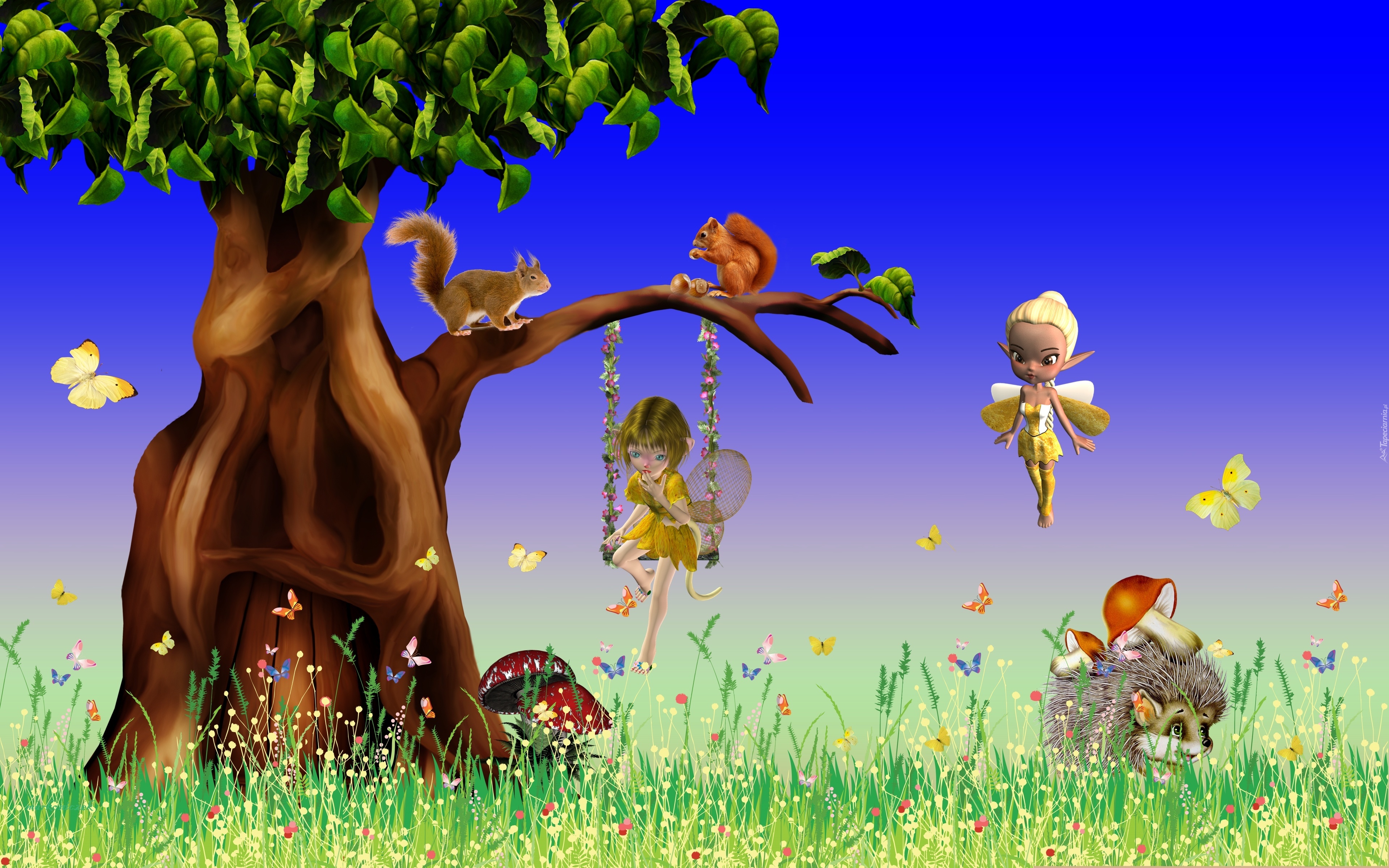 Edytor tapety: Grafika, 2D, Drzewo, Kwiaty
