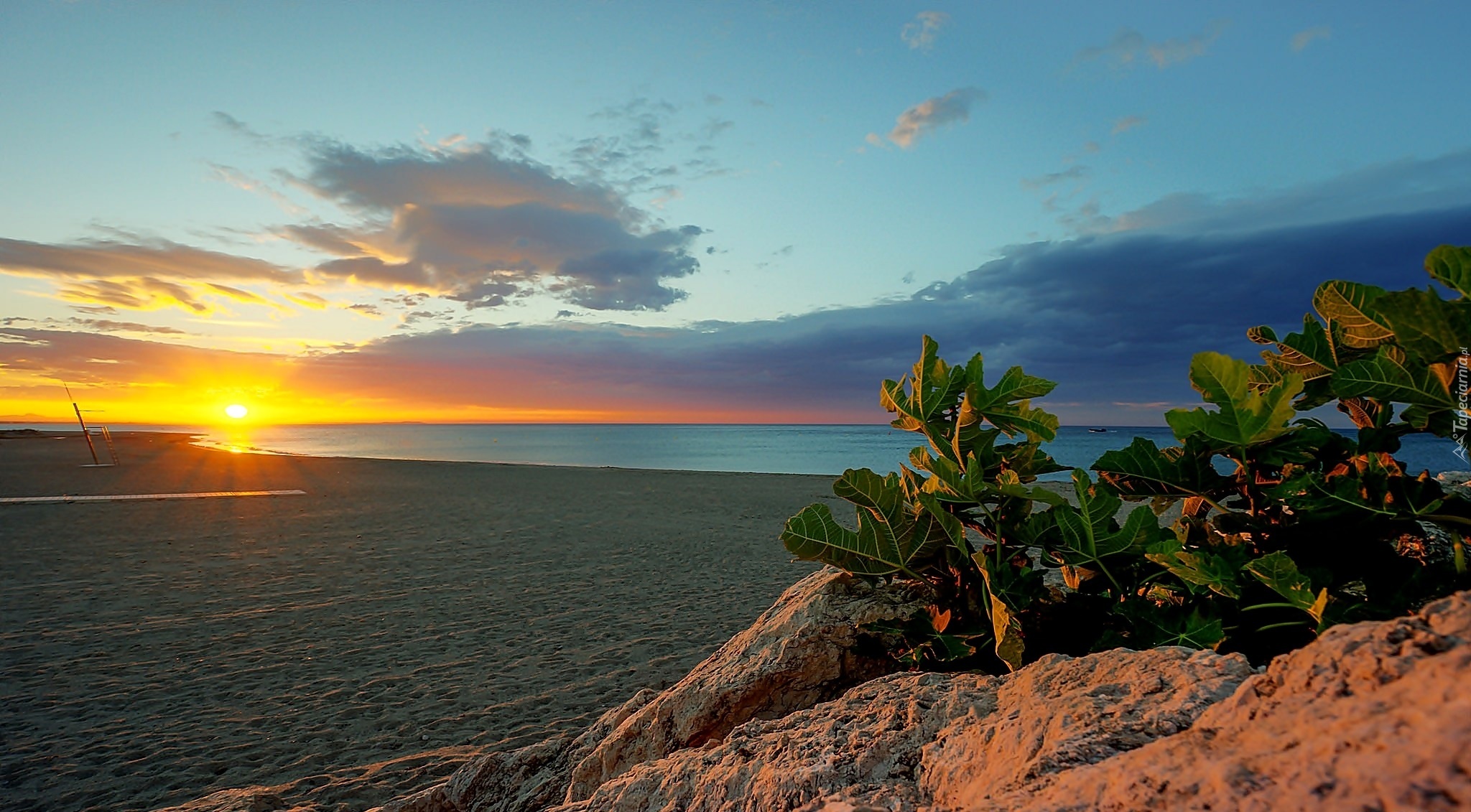Edytor tapety: Morze, Plaża, Niebo, Zachód, Słońca, Rośliny