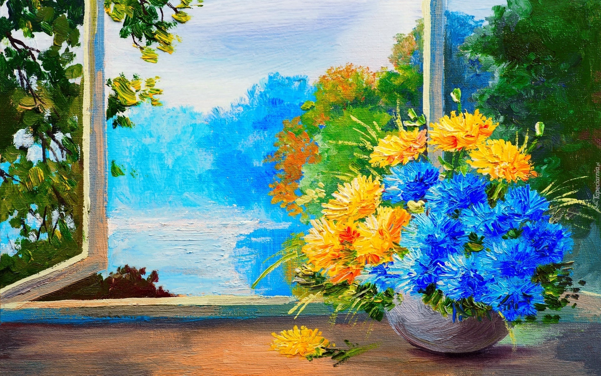 Edytor tapety: Malarstwo, Obraz, Kwiaty, Bukiet, Okno, Widok