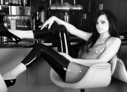 Edytor tapety: Chloe, Brunetka, Latex, Legginsy, Szpilki, Krzesło, Bar, Blat