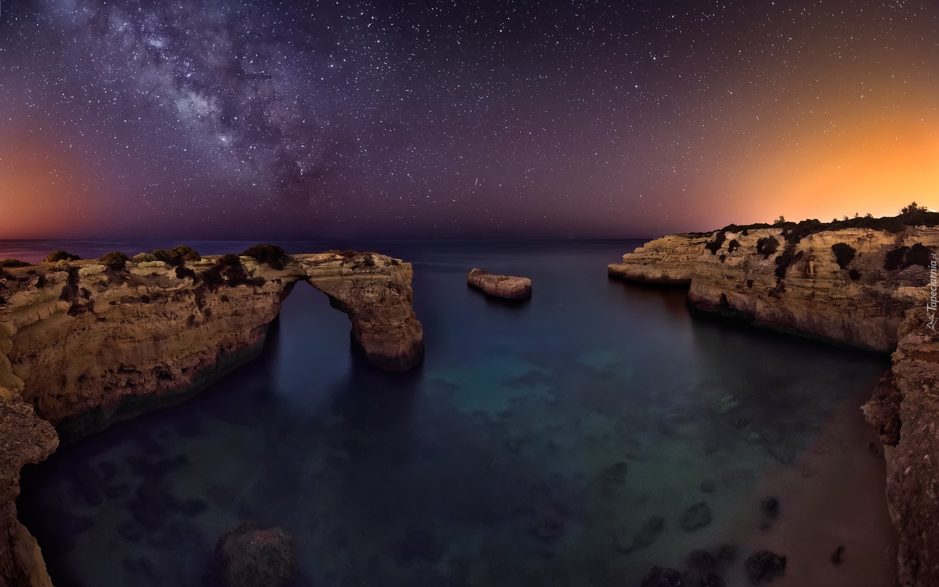 Edytor tapety: Morze, Klif, Przebijające, Światło, Niebo, Gwiazdy