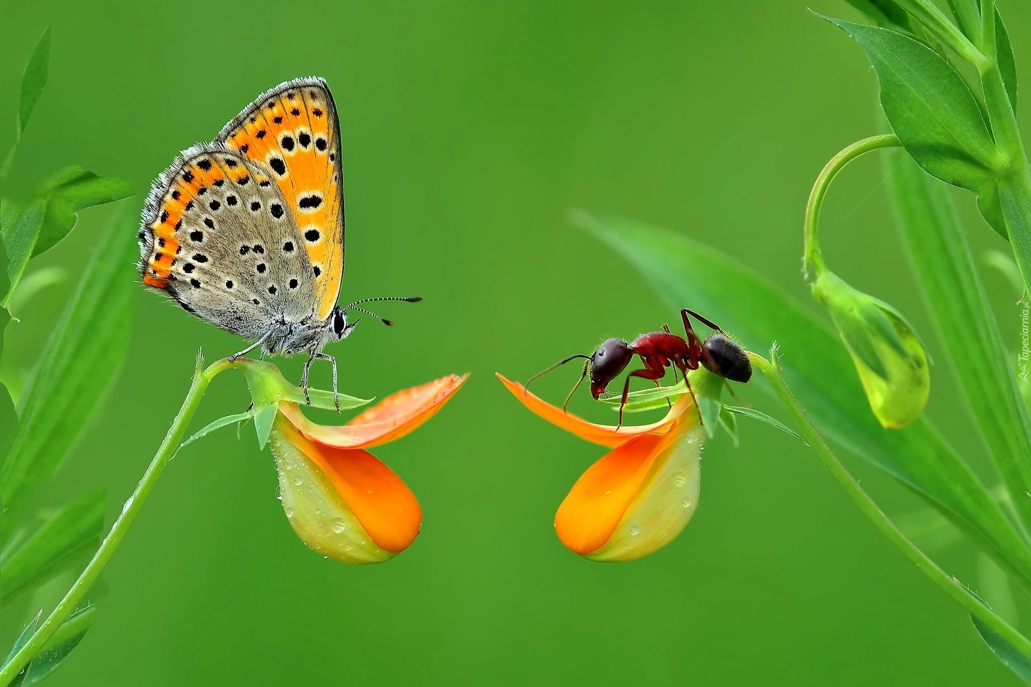 Edytor tapety: Motylek, Mrówka, Kwiatki, Makro