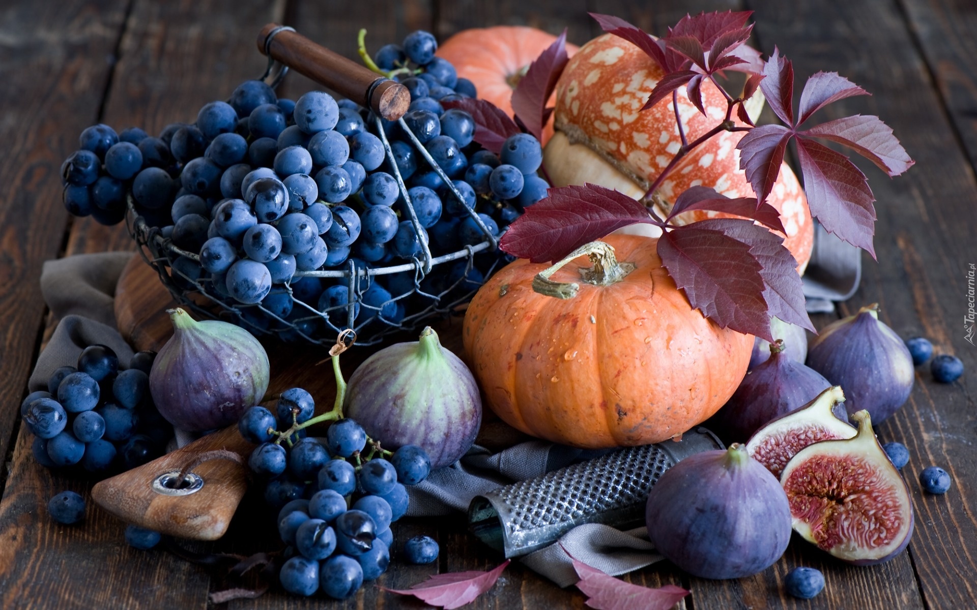 Edytor tapety: Winogrona, Dynie, Figi