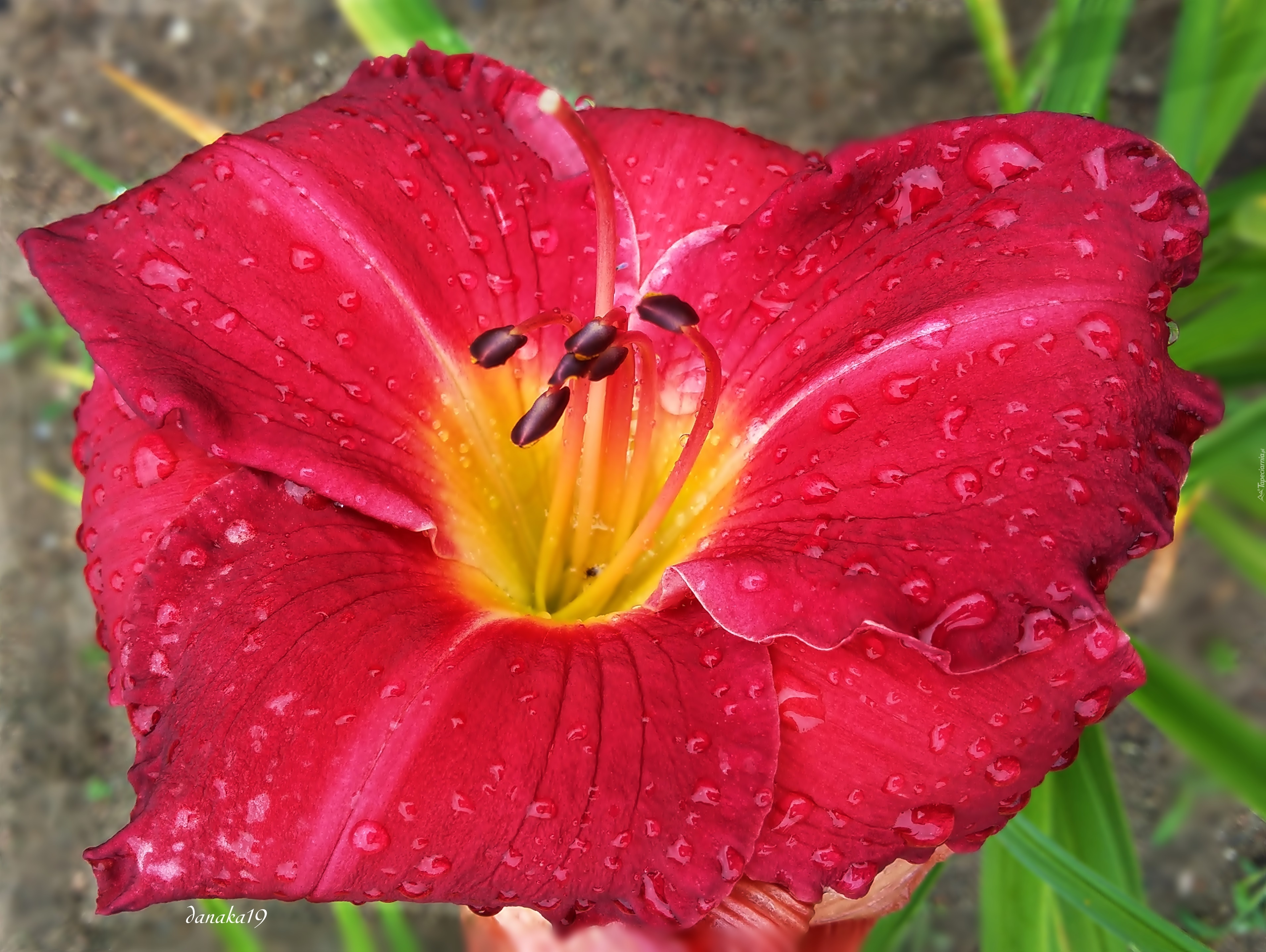 Edytor tapety: Kwiat, Czerwony, Liliowiec, Krople