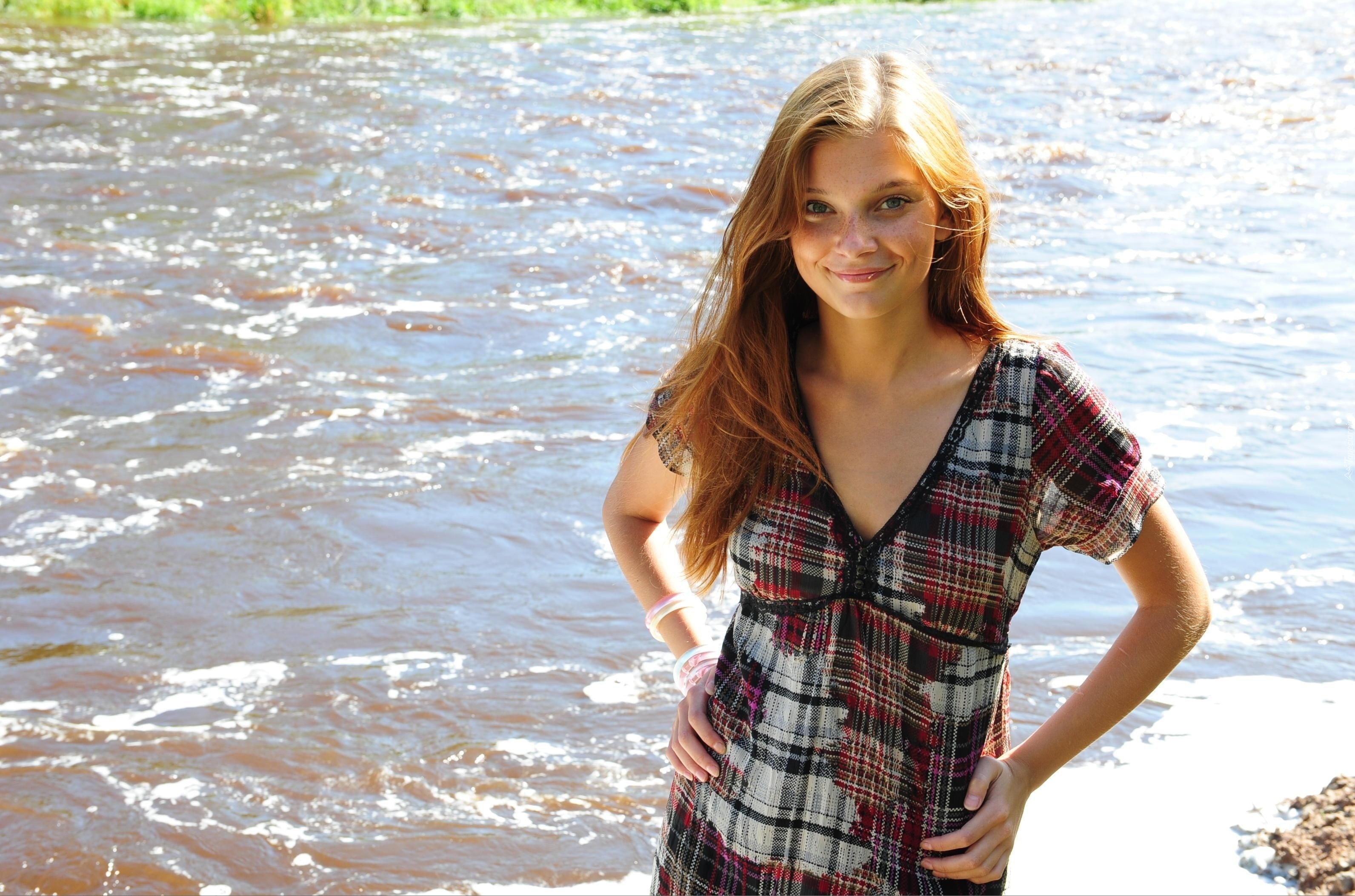 Edytor tapety: Rudowłosa, Dziewczyna, Bransolety, Woda, Rzeka