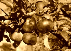Edytor tapety: Owoce, Jabłka, Gałęzie, Zielone, Liście