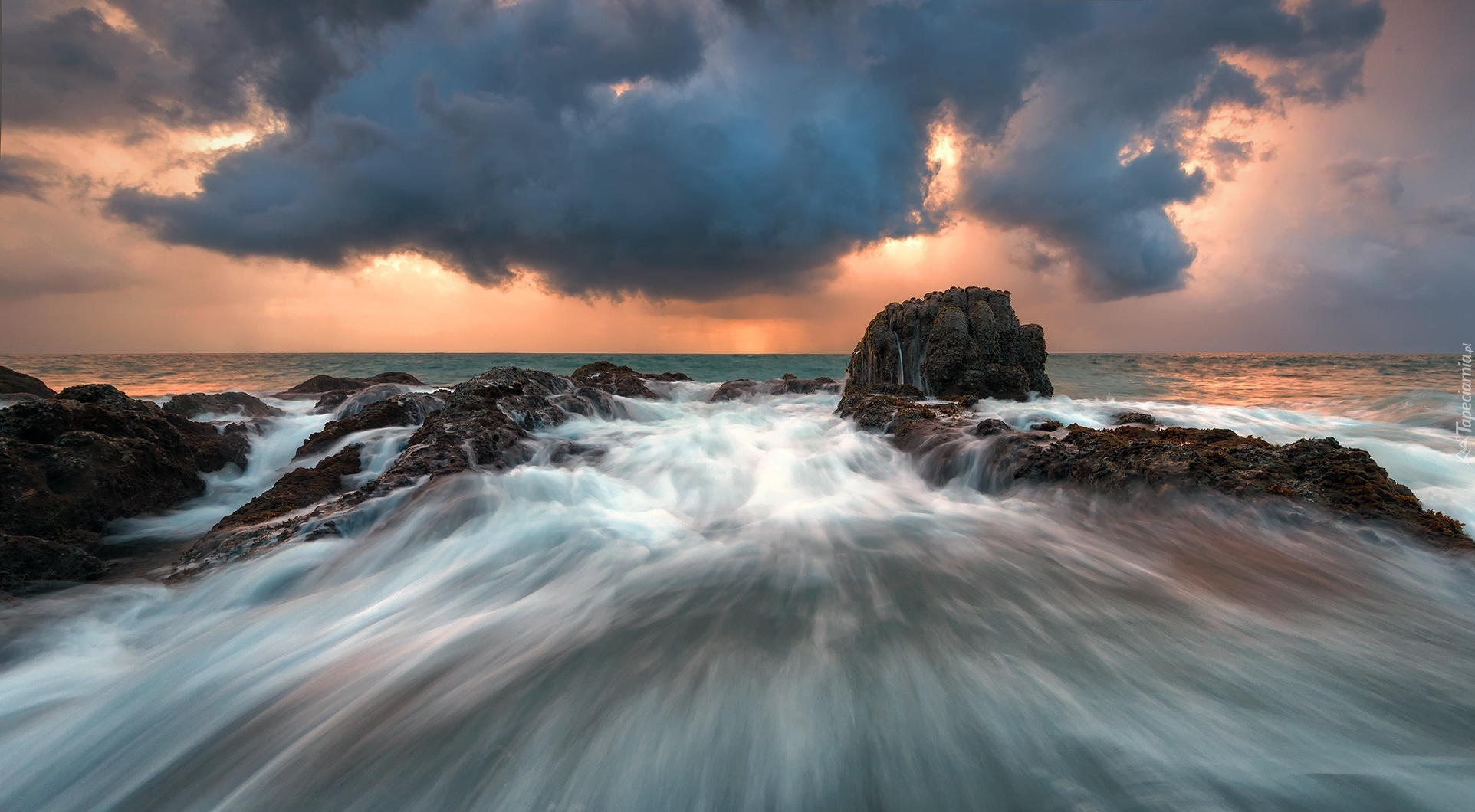 Edytor tapety: Morze, Skały, Fale, Niebo, Chmury
