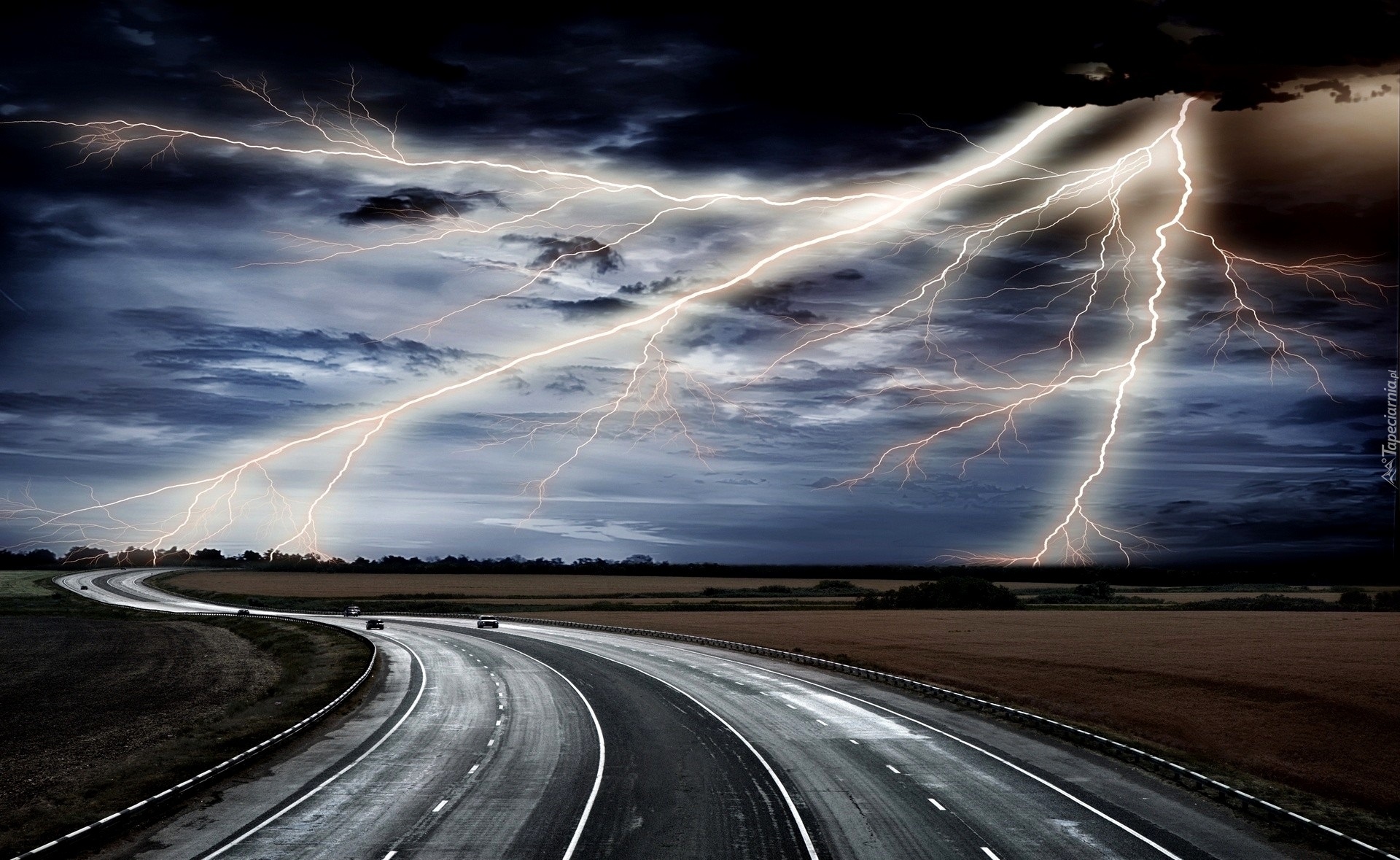 Edytor tapety: Niebo, Drogi, Pioruny