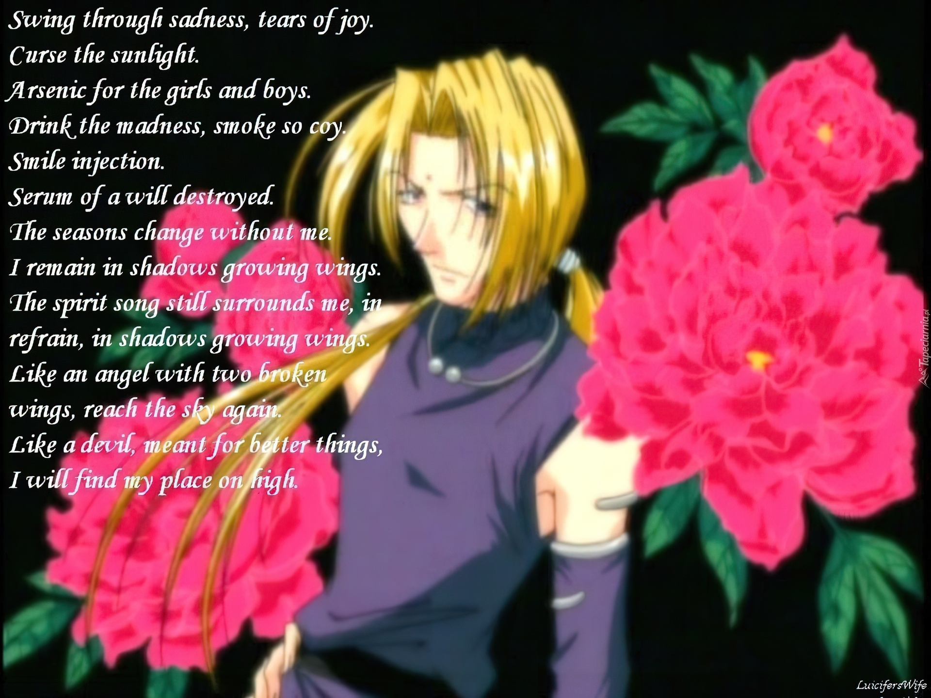 Edytor tapety: Saiyuki, wiersz, kwiaty, postać
