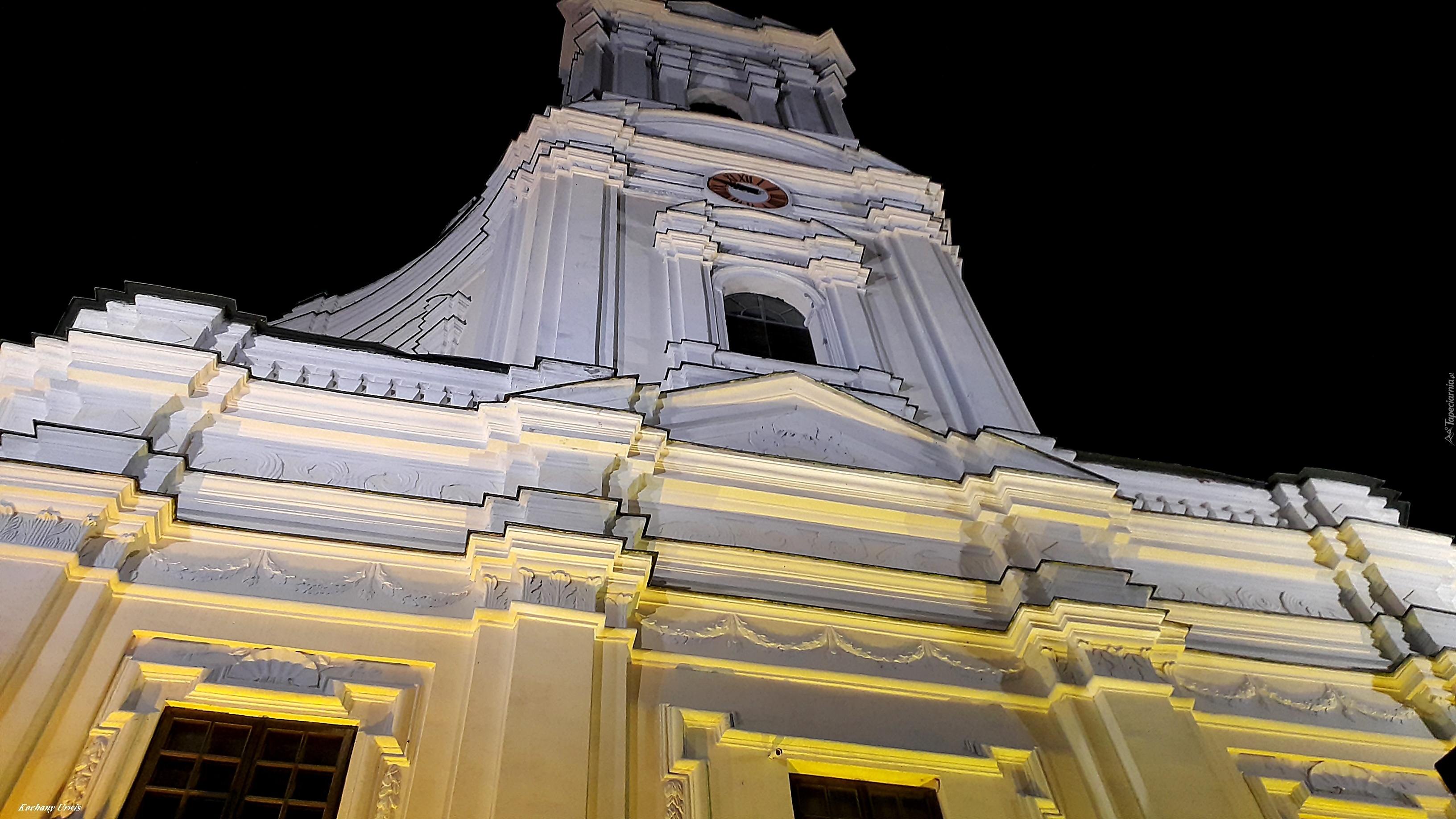 Edytor tapety: Oświetlona, Wieża, Kościoła