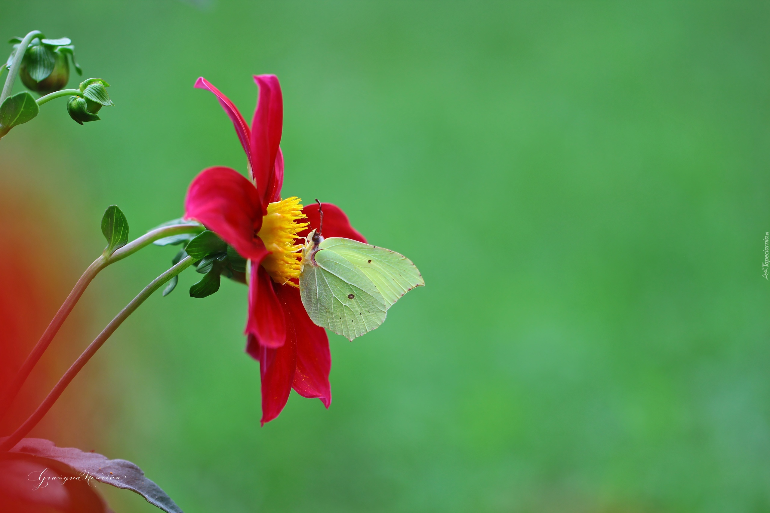 Edytor tapety: Czerwona, Dalia, Motyl, Cytrynek