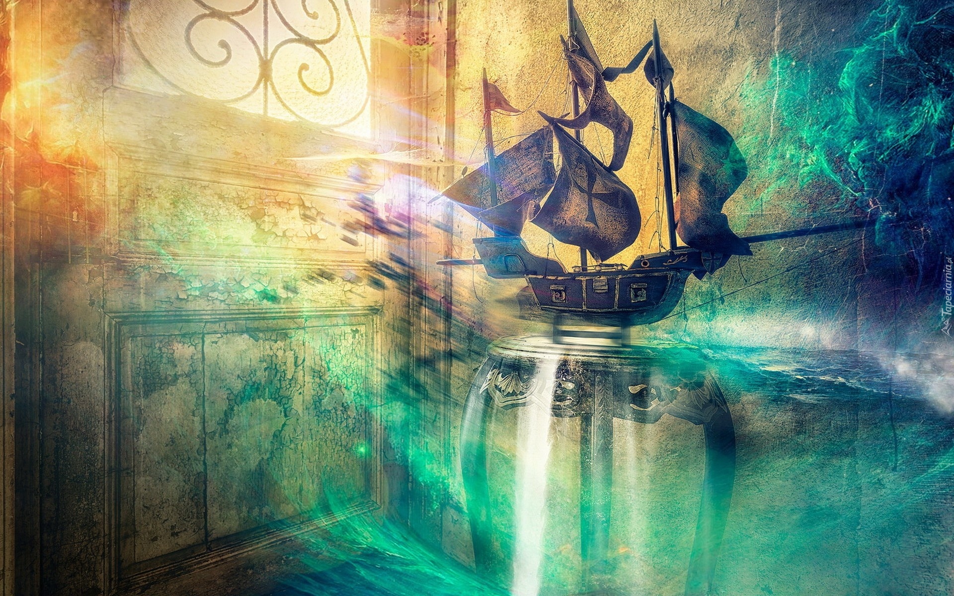 Edytor tapety: Fantasy, Statek, Żaglowiec, Okno, Światło